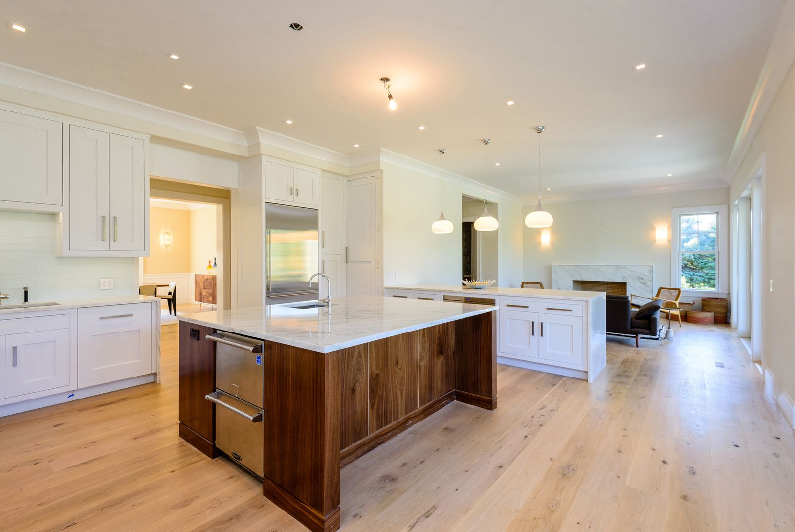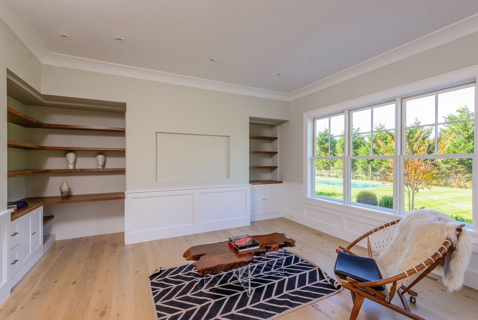 Situated on a quiet cul de sac in Bridgehampton, this recently completed traditional is the quintessential Hamptons home, combining elegant design with a modern flair. The first floor of this 5,700 sf residence is entered through a beautiful foyer leading to a great room with cathedral ceilings, floor-to-ceiling windows, French doors, and a fireplace with built-in mantle. Fully equipped with top grade, stainless steel appliances, the gourmet k