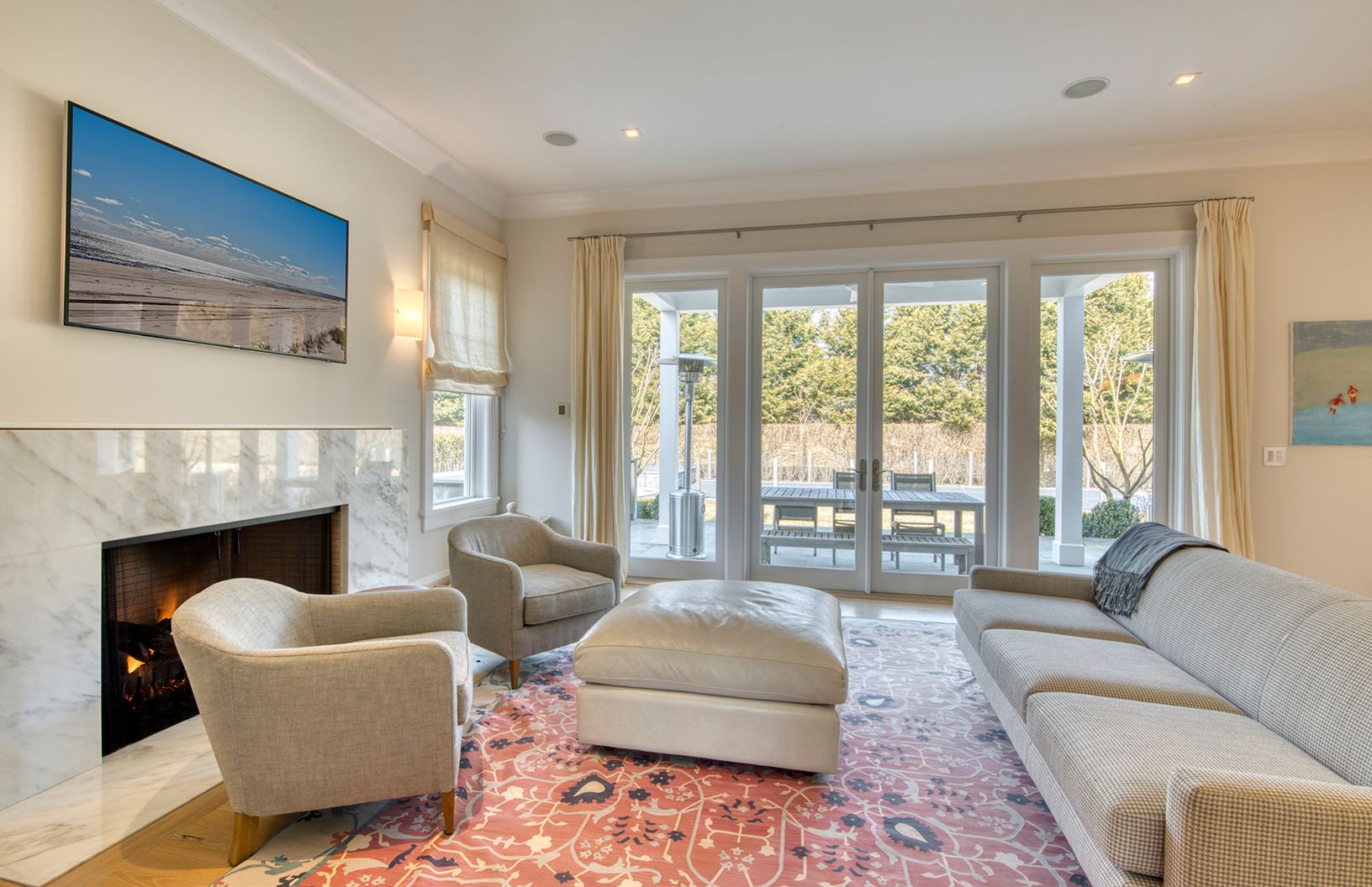 Situated on a quiet cul de sac in Bridgehampton, this traditional is the quintessential Hamptons home, combining elegant design with a modern flair. The first floor of this 8,200 sf residence is entered through a beautiful foyer leading to a great room with cathedral ceilings, floor-to-ceiling windows, French doors, and a fireplace with built-in mantle. Fully equipped with top grade, stainless steel appliances, the gourmet kitchen has a walk-i