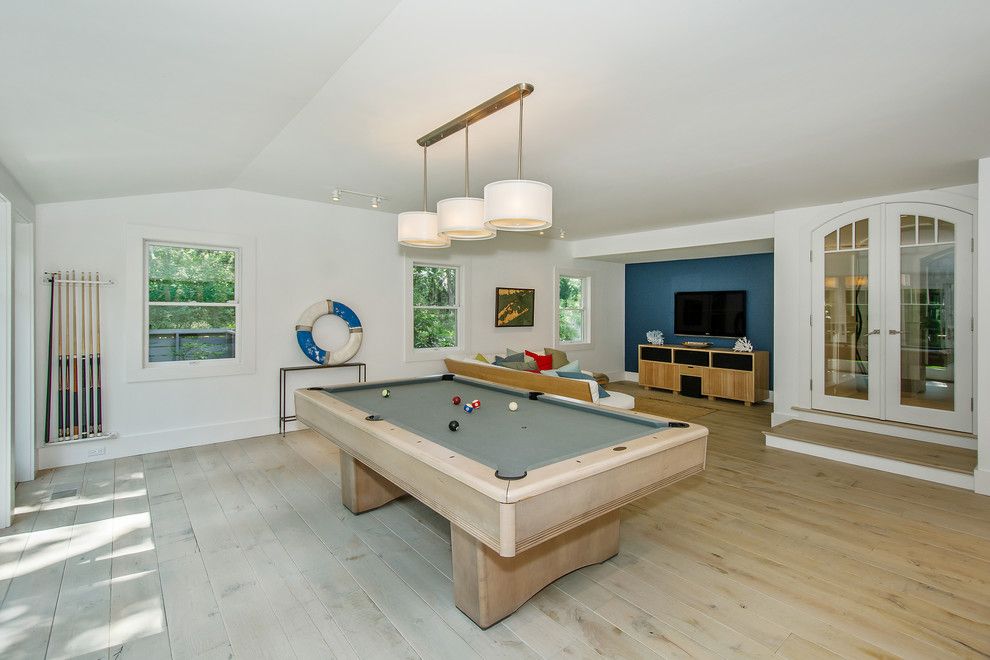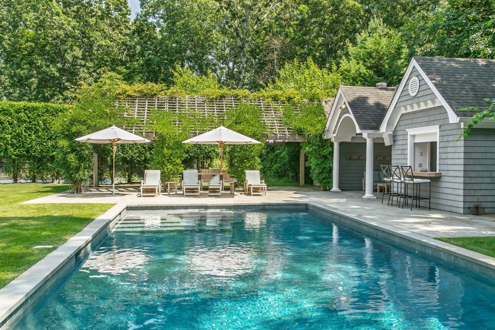 Newly listed Hampton shingled traditional with a modern edge has it all. The 4,000 sq ft home features vaulted ceiling living room with fireplace, den with bookshelves, bright chef's kitchen, large sound-proof media/entertainment room, 5 bedrooms including 2 masters one of which has a fireplace and large marble bathroom. The finished lower level includes large play area, various storage rooms and full bathroom. Outside, the park-like 2.7 acre