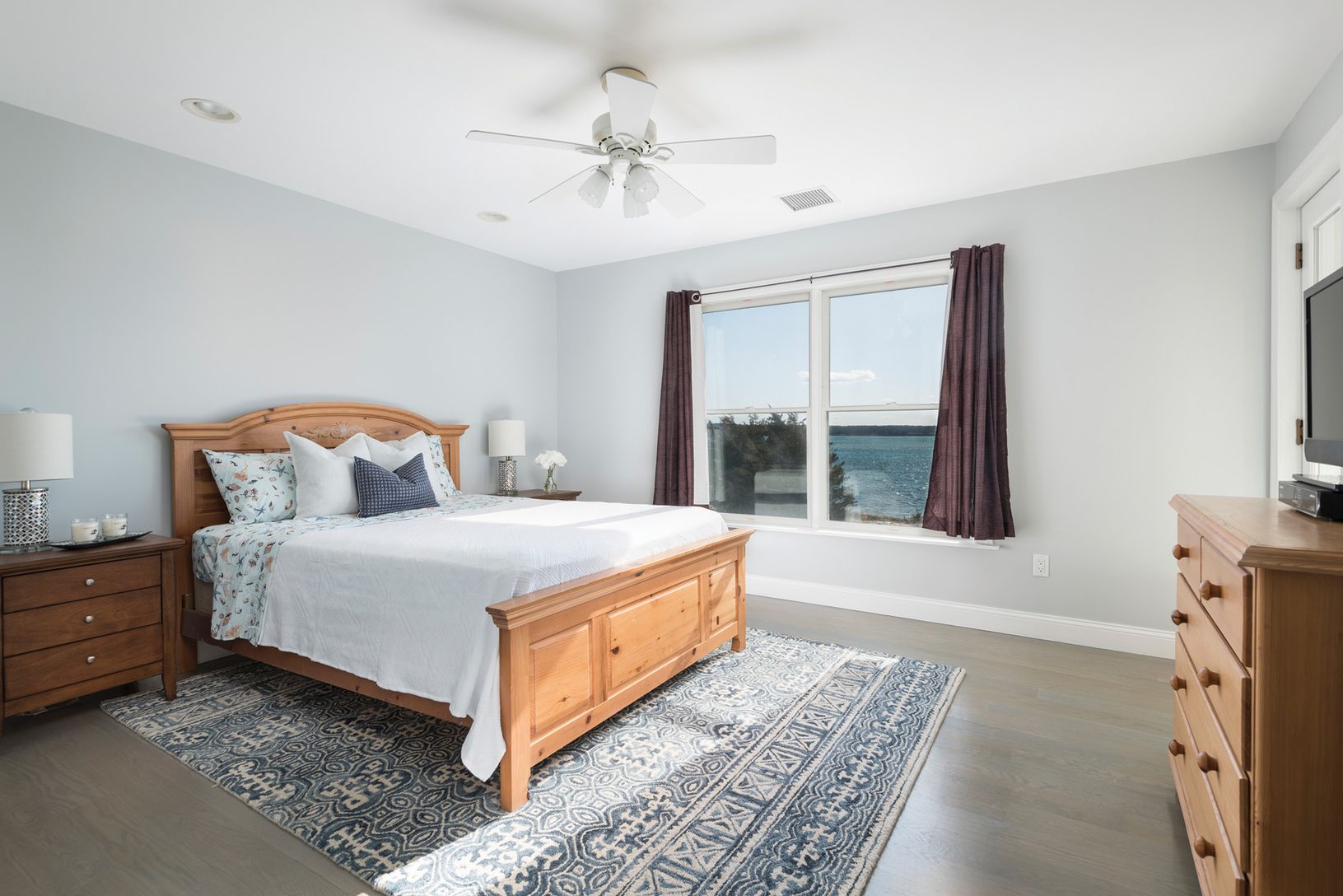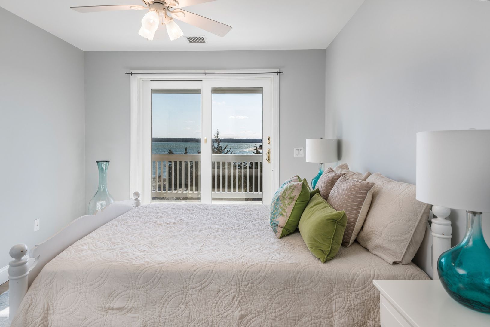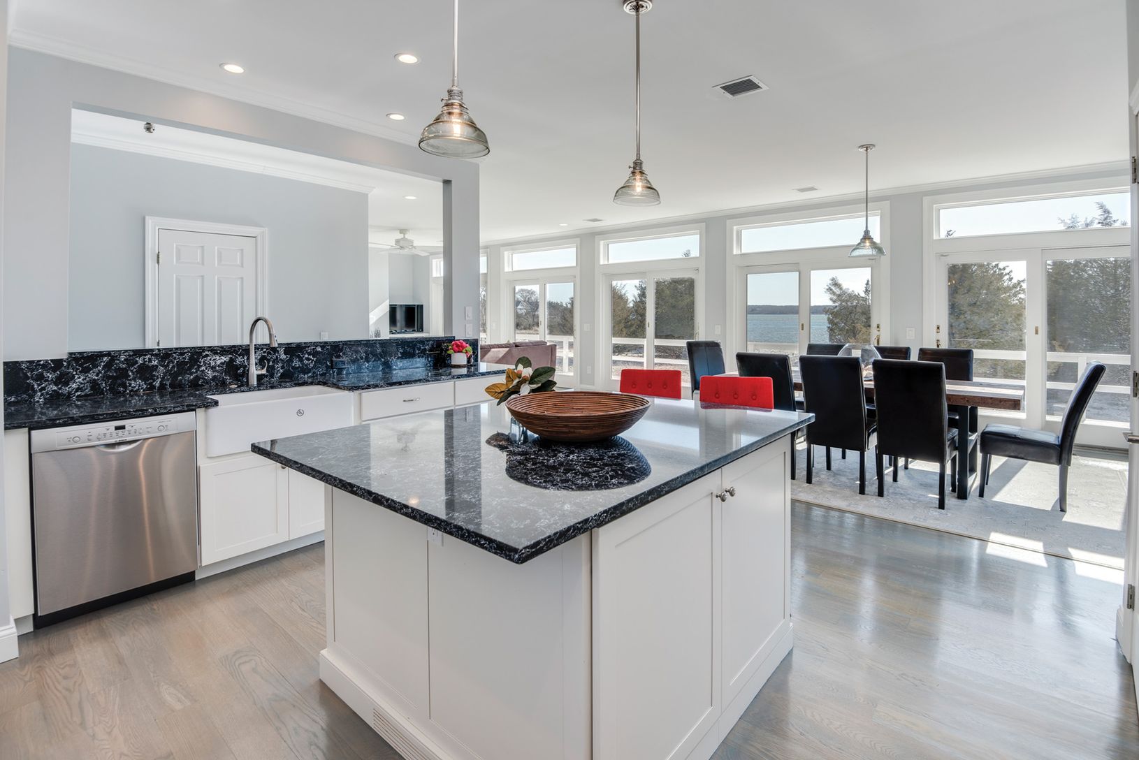 Sited on over one waterfront acre, there isn't a better place to enjoy spectacular Hamptons sunsets than from this west-facing four bedroom, three and one-half bath traditional with an attached two-car garage. Abutting 2.8+/- acres of preserve, this property offers plenty of privacy along with a small sandy beach, a heated waterside pool surrounded by a brick patio, a pool house and decks on both the first and second floors. The open floor pla