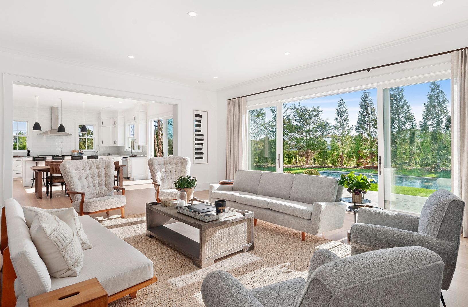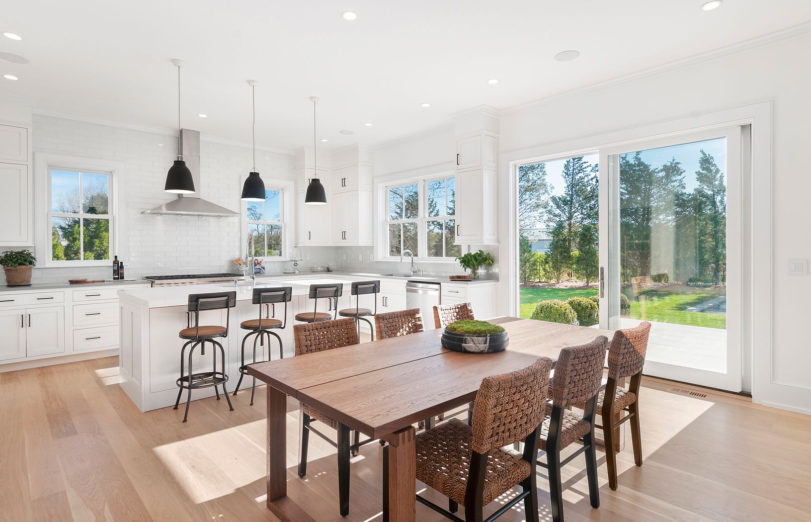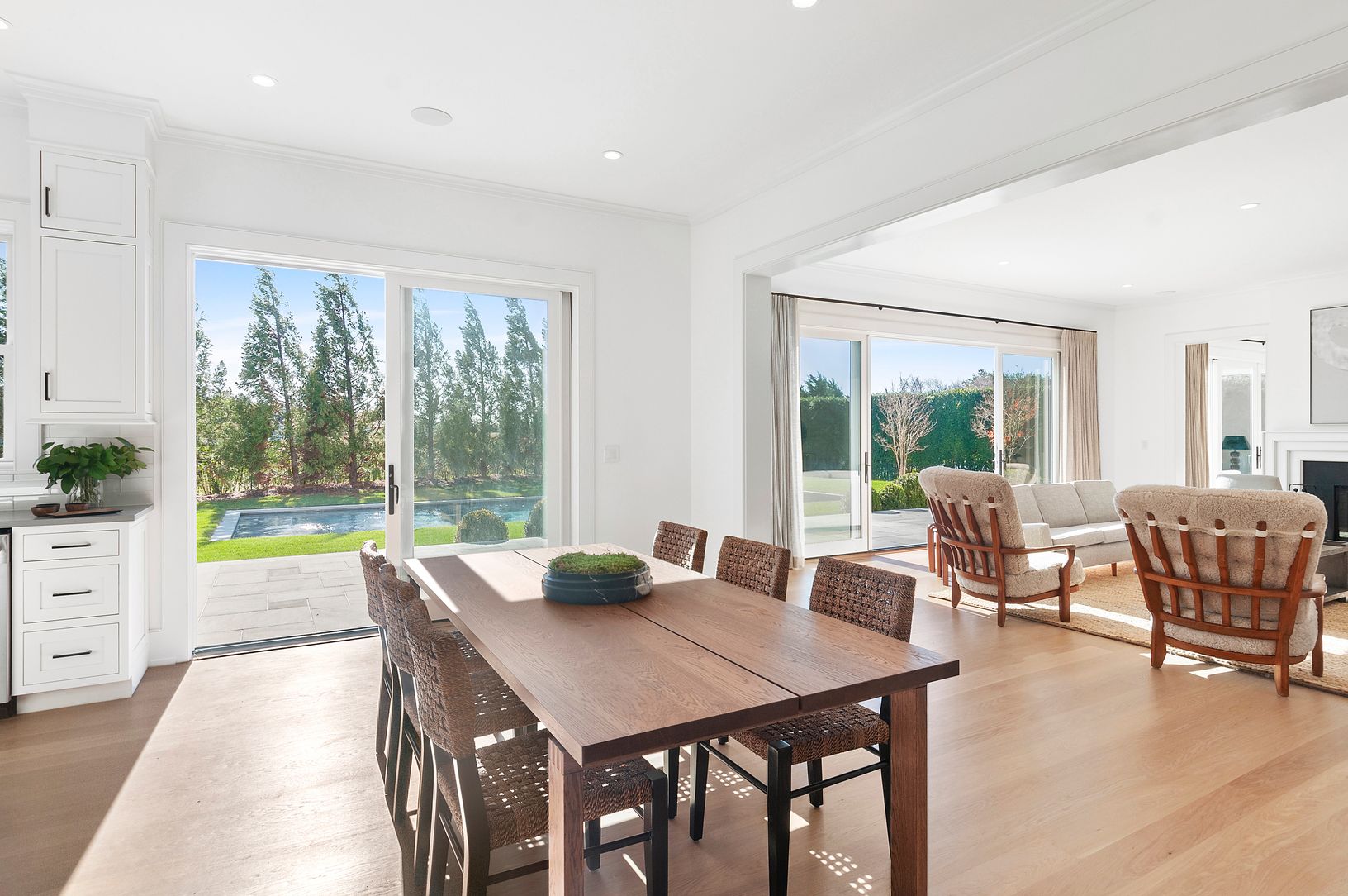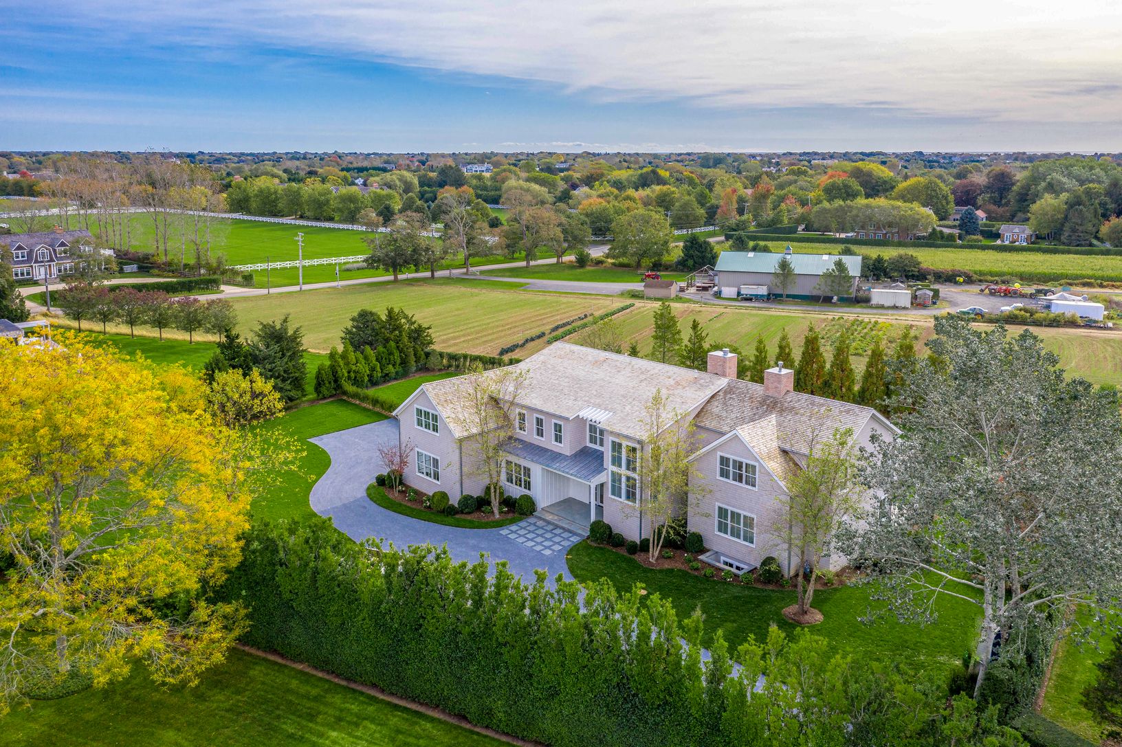At the end of a quiet Water Mill cul-de-sac, south of the highway, you’ll find this lovely, newly constructed approximately 5,900-square-foot home. Expertly designed by McDonough & Conroy Architects and crafted by Hampton Builders, this seven-bedroom, six-full-bathroom, and two-half-bathroom home blends the timeless aesthetic of a shingled traditional with a modern floor plan, and clean, crisp finishes.