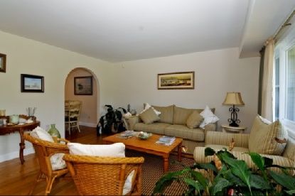 Bright updated one level home with southern exposure is located on a quiet street in the town of Southampton. Renovated in '96 and featuring 3 bedrooms and 2 baths. The master suite has a beamed and vaulted ceiling, walk in closet and slider leading out to the rear yard. There is a living room in the front, a wonderful large open and airy kitchen with granite countertops and ceramic floors, a vaulted and beamed ceiling den with a wood burning