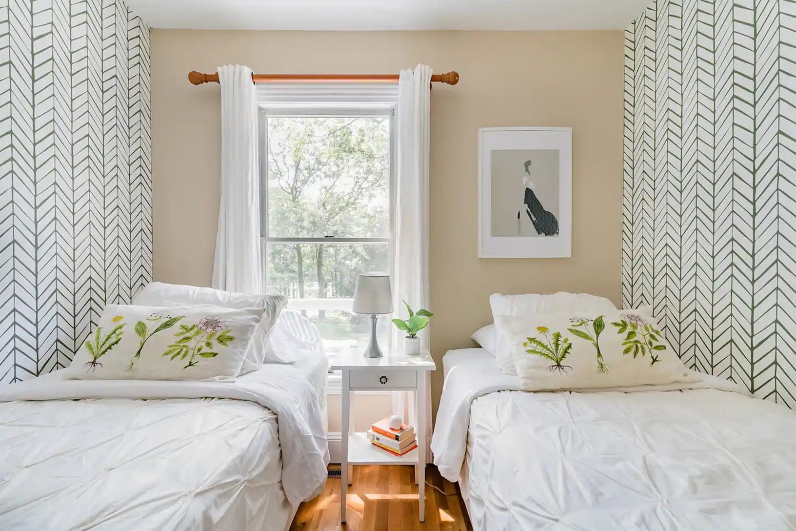 Experience a private and secluded retreat in a home where bold feature walls and chic decor blend with traditional wood fixtures and styles.