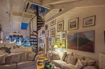 This four-bedroom, three-bath home sits on a shy acre in quiet woodlands overlooking Napeague Harbor and Gardiners Bay. The gorgeous sunset views from the deck are surpassed only by the 360-degree vista from the upper loft encompassing the Atlantic Ocean and Long Island Sound.