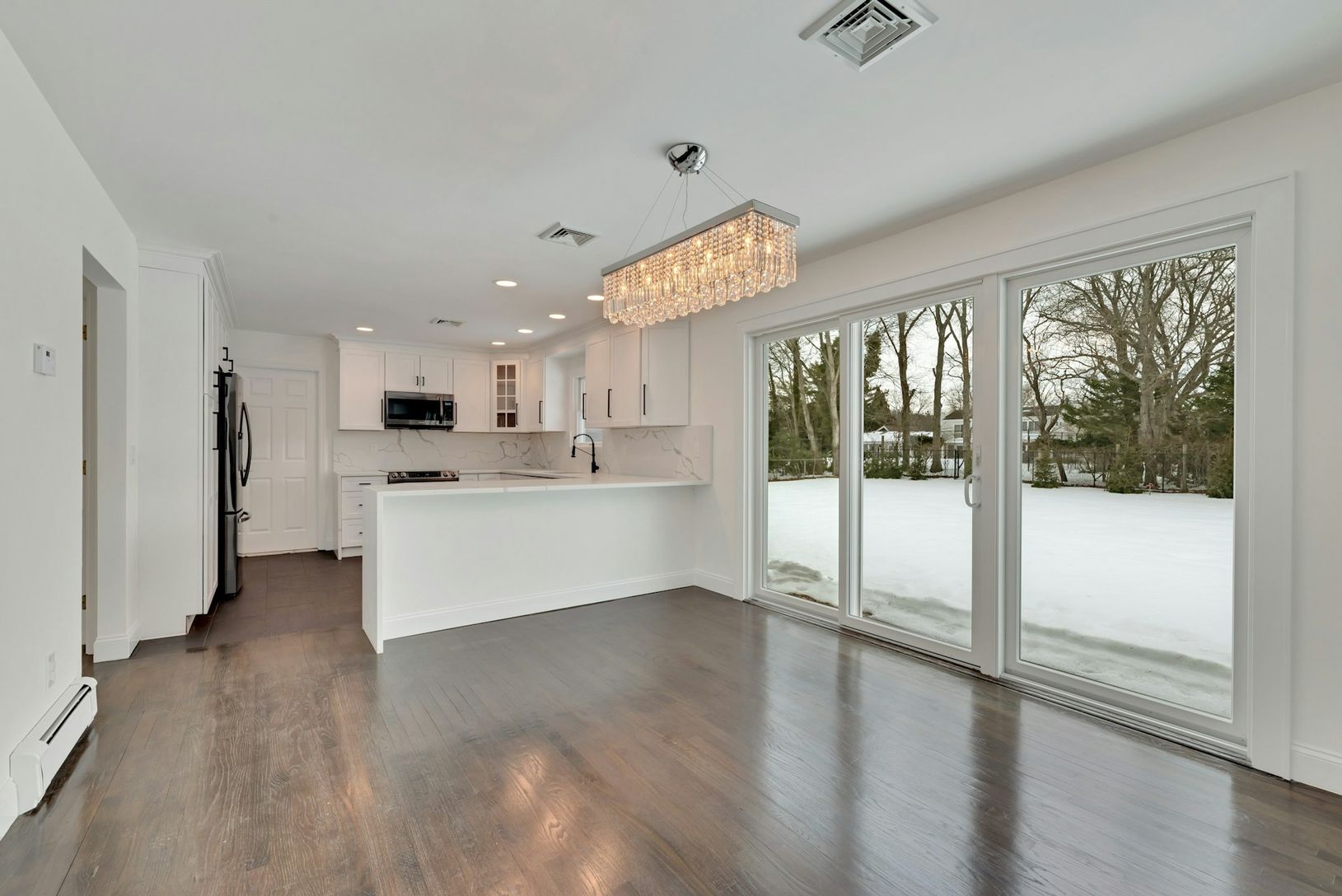 Welcome to this beautifully renovated ranch in the highly desirable hamlet of Remsenberg. Set on a generous half-acre property, this 1,600 + square foot home offers 3 bedrooms and 2 fully updated bathrooms, with a thoughtful 2026 renovation that includes newly renovated baths, a freshly painted interior, and brand-new sliding glass doors that open to a sun-soaked, fully fenced backyard. The spacious living area is anchored by a charming wood-b