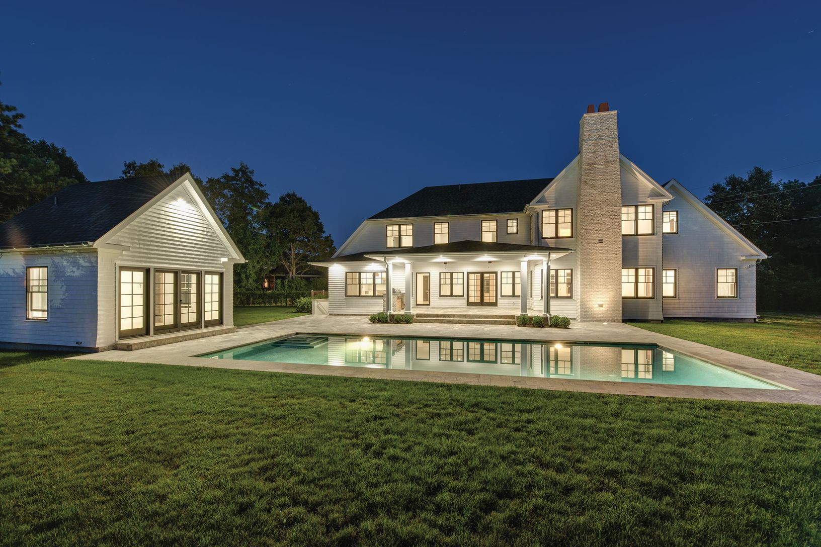 This strikingly beautiful new construction (designed by renowned Suter & Suter architects and built by top Hamptons builder WH Contracting) is located at the end of a cul-de-sac in the desirable Post Fields development. Surrounded by almost an acre of lawns and privacy hedging, the 5,000+/- sq. ft. cedar shingle home has a hip transitional feel and offers seven bedrooms, six-and-one-half baths and two-car garage. Not a luxurious detail was