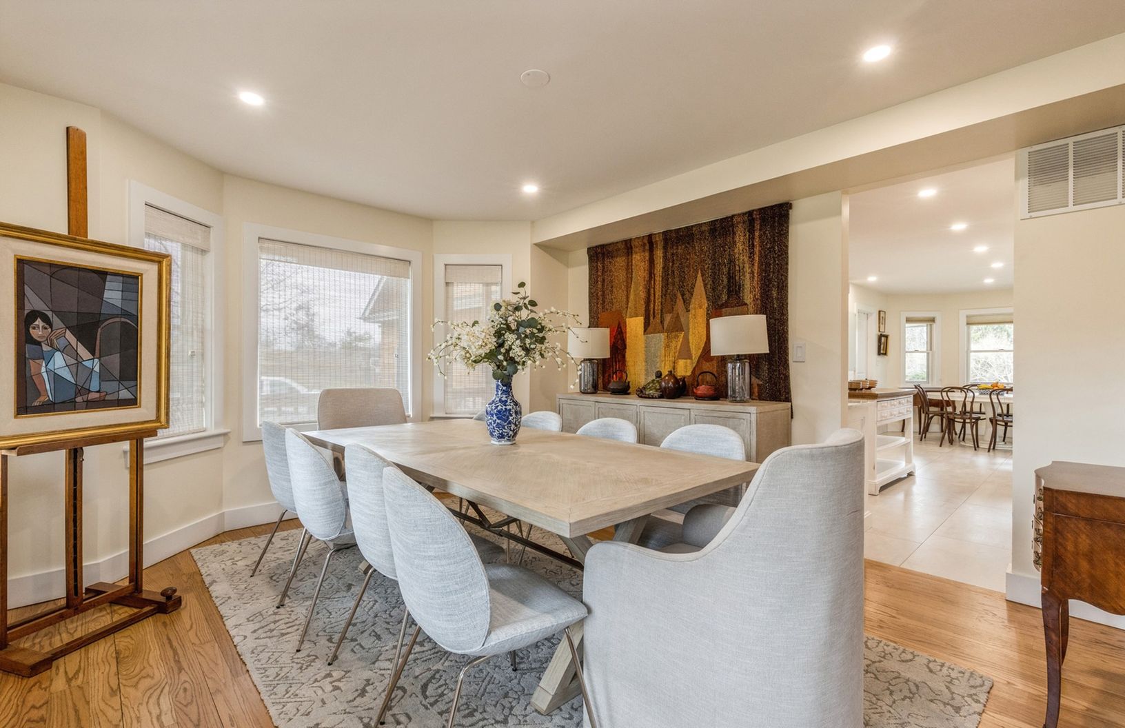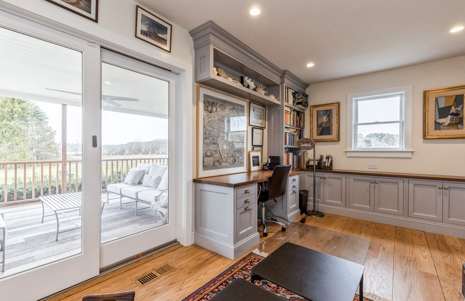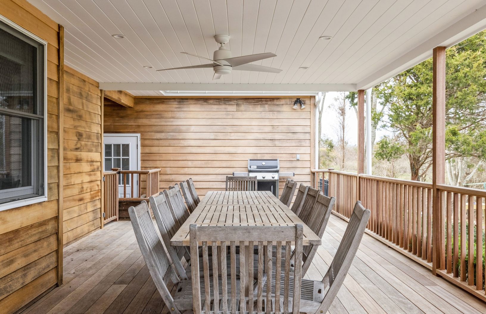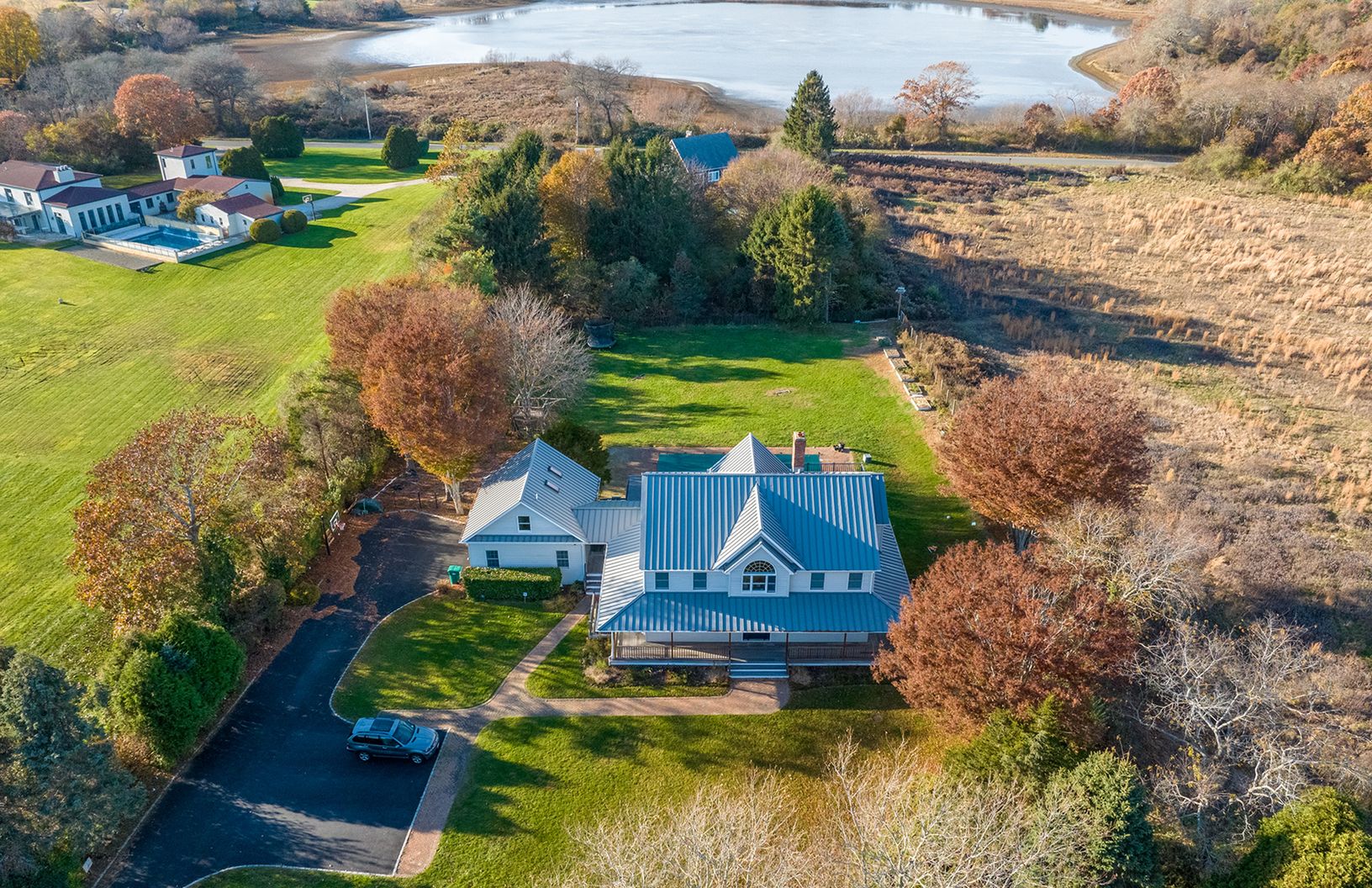 Located in a bucolic Sagaponack with views of Poxabogue pond, Wolfer Vinyard and stunning sunsets. Less than 2.5 miles to the ocean, this traditional renovated house includes country charm while providing modern convenience. Beautifully decorated featuring 4 bedrooms, 3 full bathrooms, double height living room with fireplace, separate office, formal dining room, stunning Bates and Kroff kitchen and a generous bedroom suite complete the first