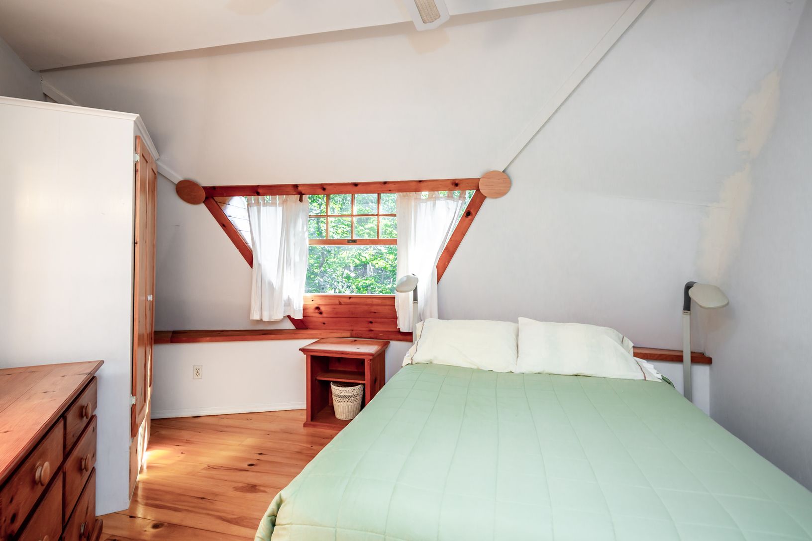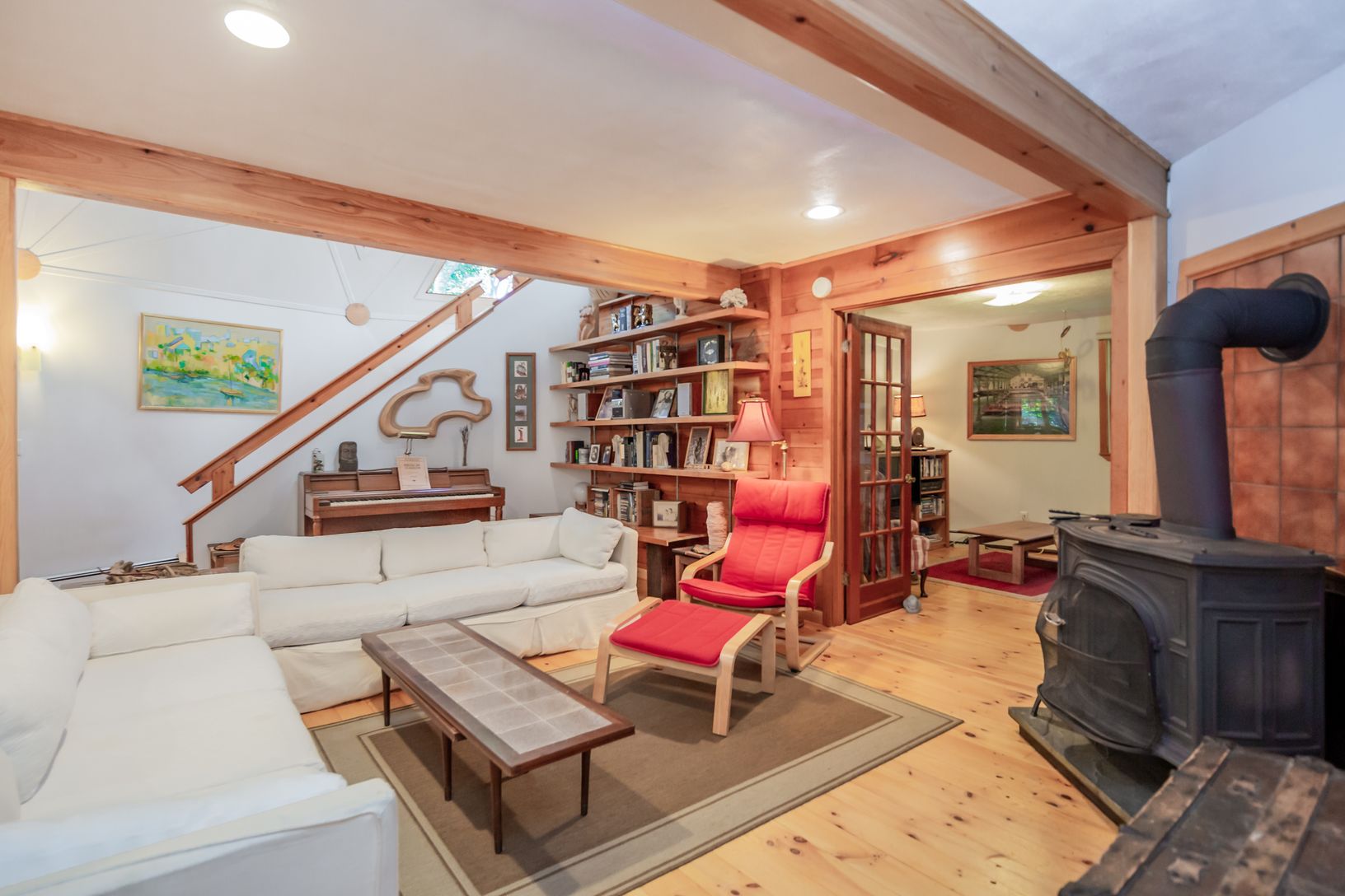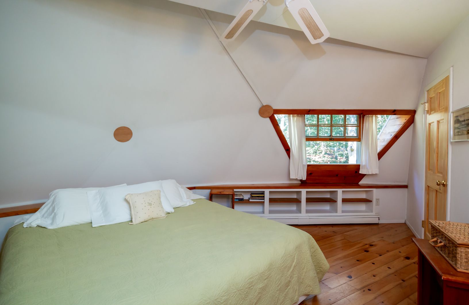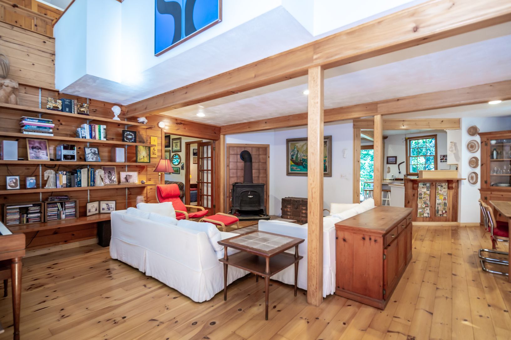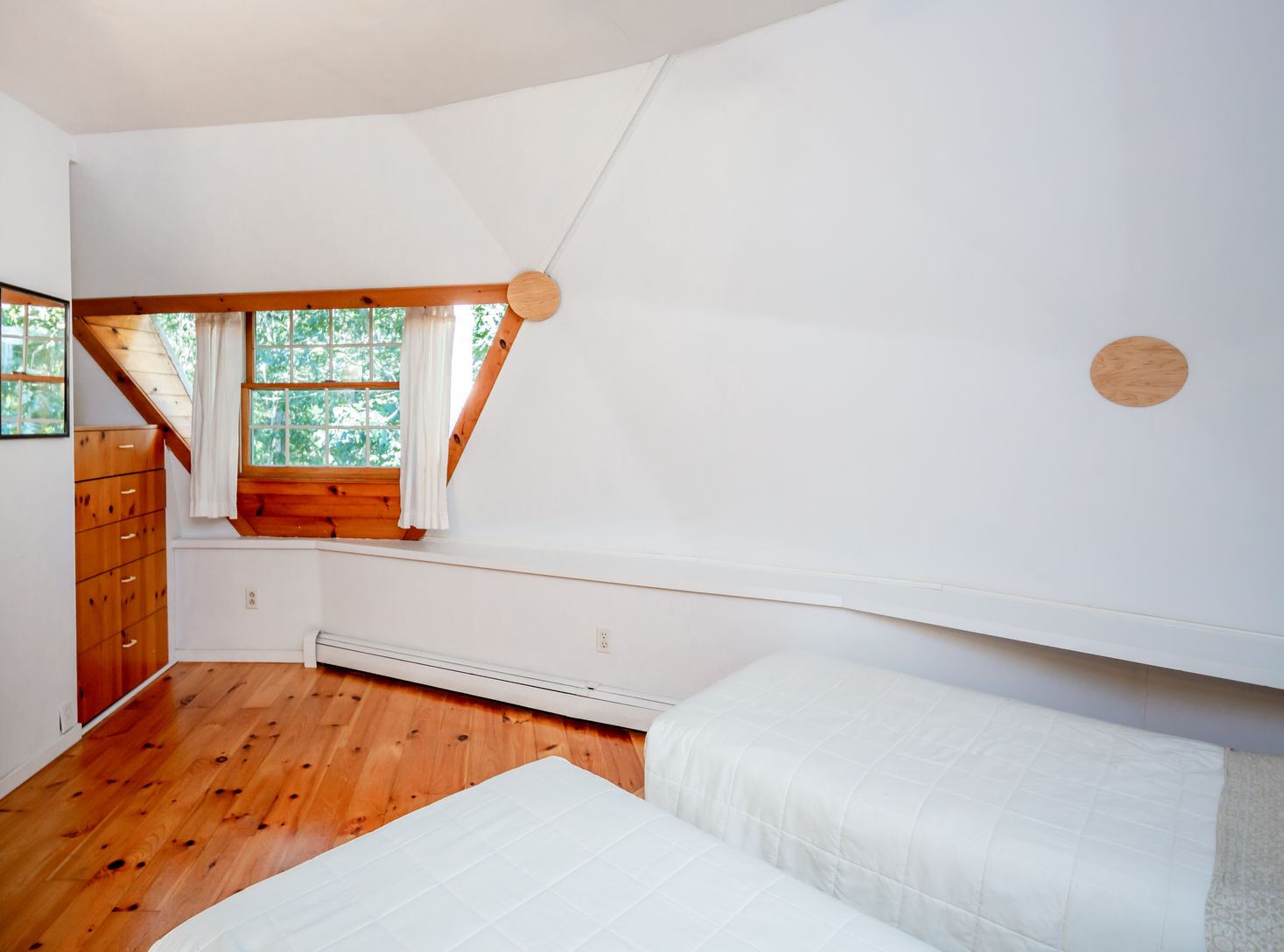 Inspired by Buckminster Fuller's geodesic design, this unique architecture evokes a cool California vibe with an open airy interior and an abundance of natural light that flows throughout. The first floor is comprised of an expansive living room, dining area, kitchen, den, and guest bedroom with ensuite bathroom. The second story holds a very secluded master bedroom with ensuite bathroom, two additional guest bedrooms, and a guest bathroom. Th