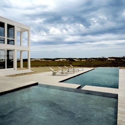 Imagine living in the museum of modern art, yet set in bay beach secondary dune. This dramatic living/gallery home of 5 bedrooms / 4 1/2 baths has been published and appears in the documentary "September Issue". Panoramic views of the dune preserve and Gardiner's Island across the bay. Large sliding glass panels beckon you out to the pool area, dissolving the distinction between indoor and outdoor living. Designed with billowing sails of par