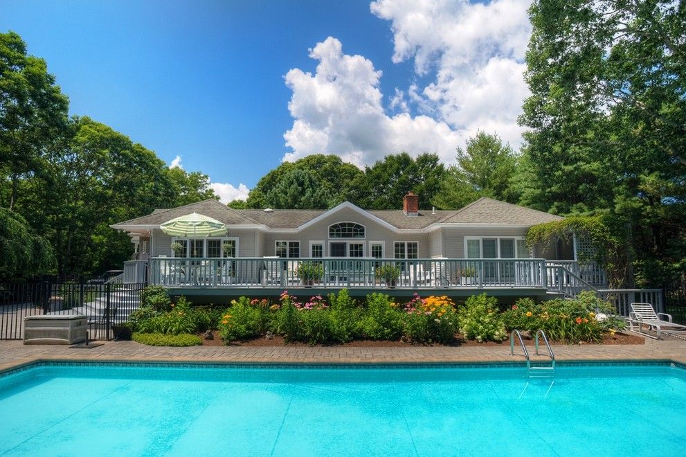 Spectacular specimen trees, flowering shrubs and prolific perennials highlight this lushly landscaped one acre near-north Water Mill property. Lovingly cared for and pristinely maintained, the house itself contains a spacious vaulted and open living room with fireplace, dining area and a granite center island Sub Zero equipped chef's kitchen. Multiple sliders from all principle rooms lead onto an expansive deck and pergola overlooking the ma