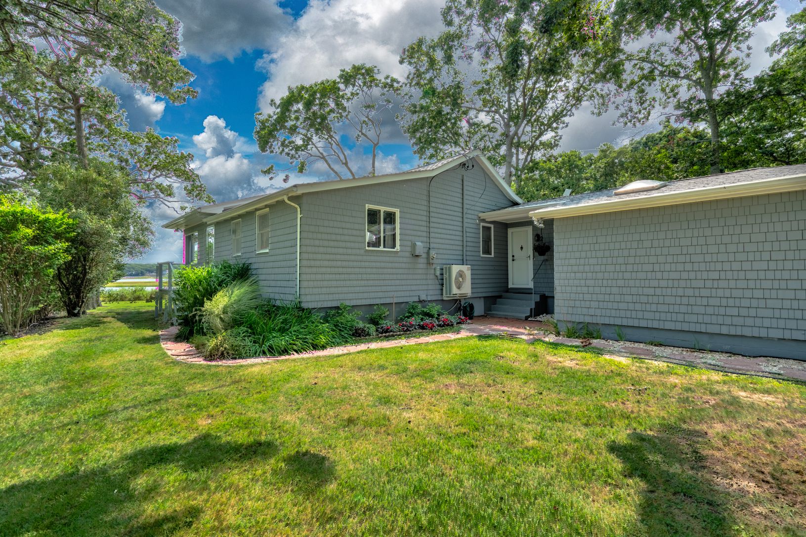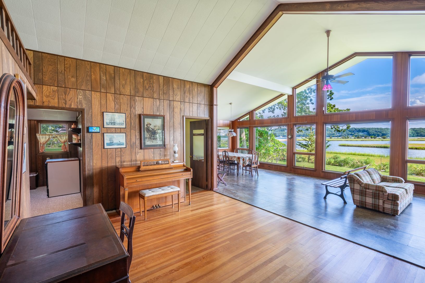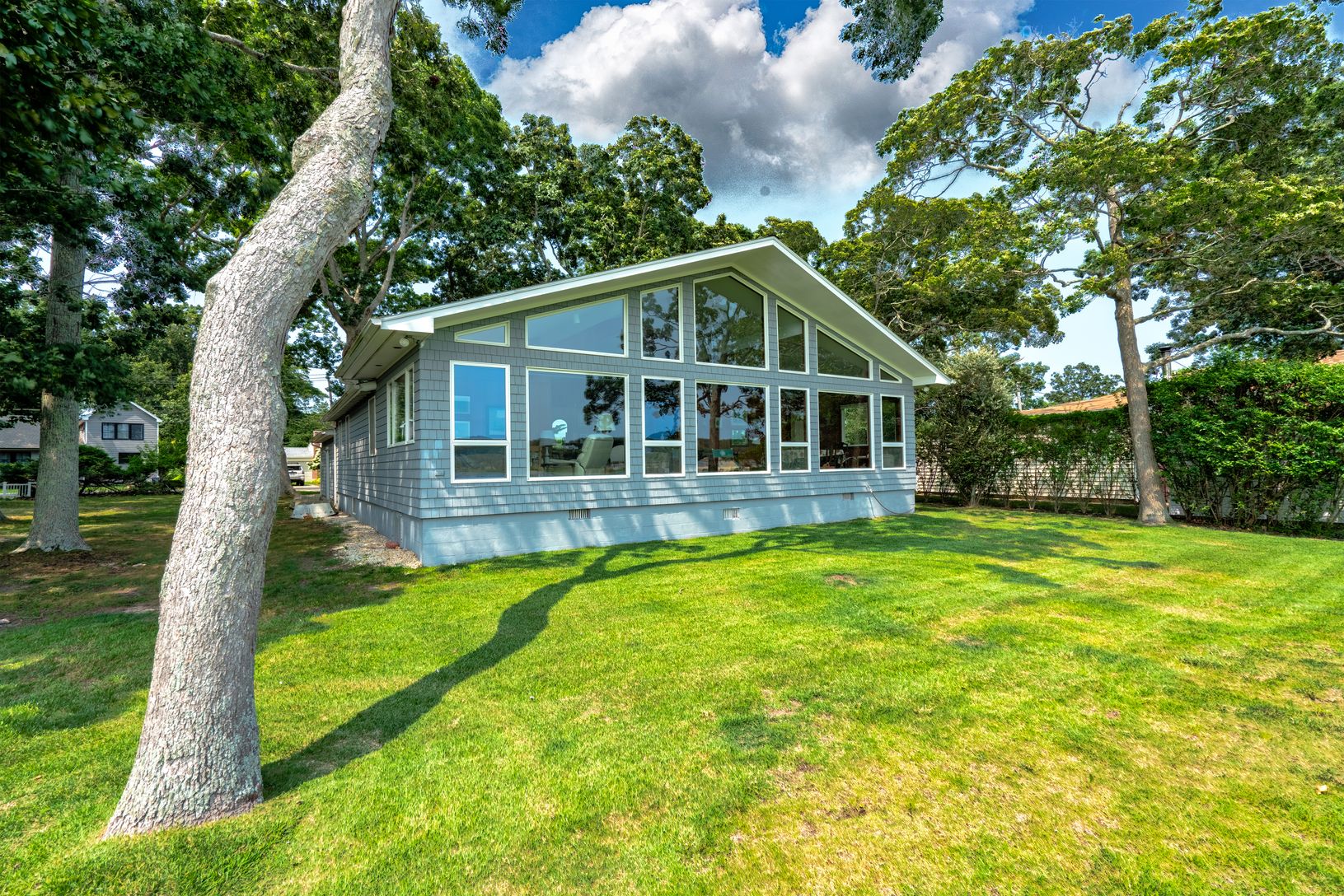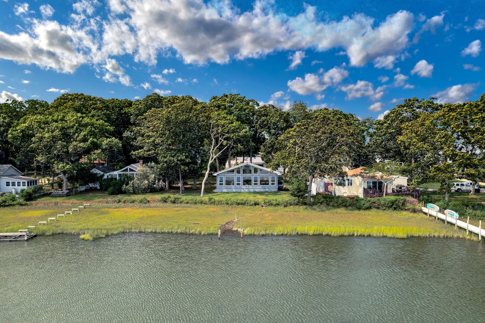 Take in expansive views overlooking Conklin Point across to Shelter Island from this waterfront cottage with three bedroom, one full bathroom, an open concept living and dining room area with a wall of glass windows to fully encapsulate the protected nature enclave leading out to the bay. Less than 500 feet feet from this home is the 20 acre, half mile beach peninsula and nature estuary which is owned by the Island