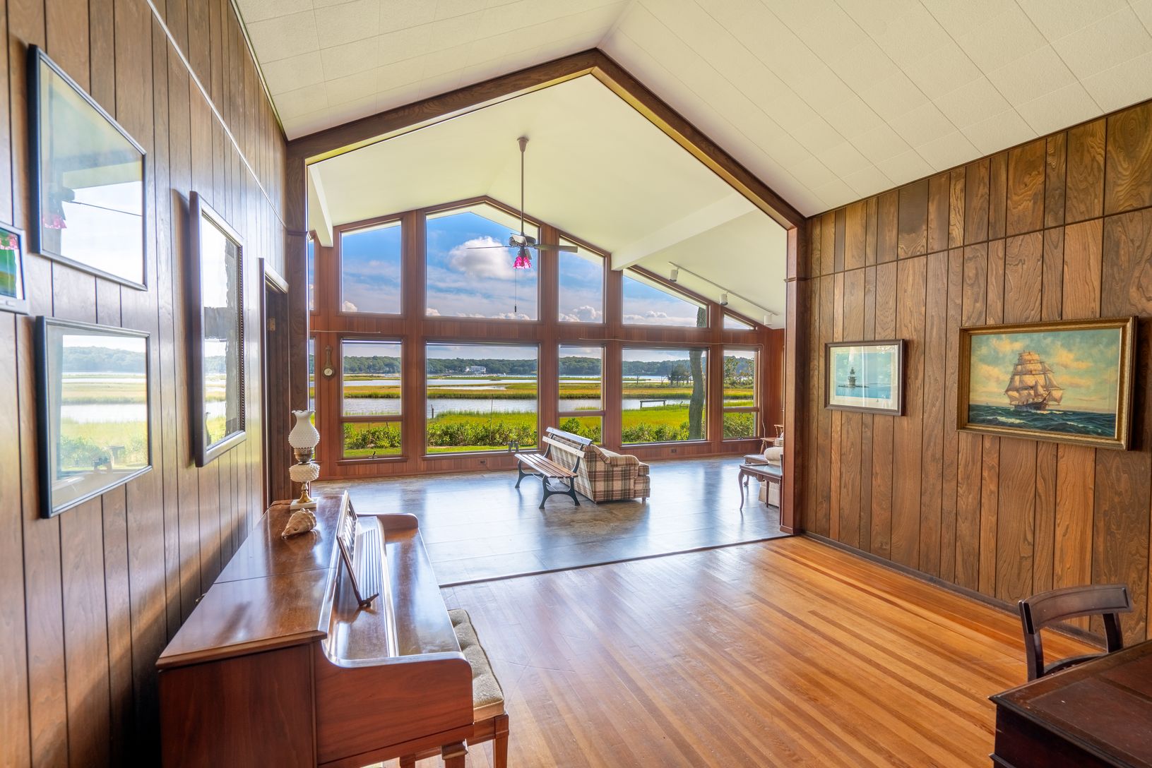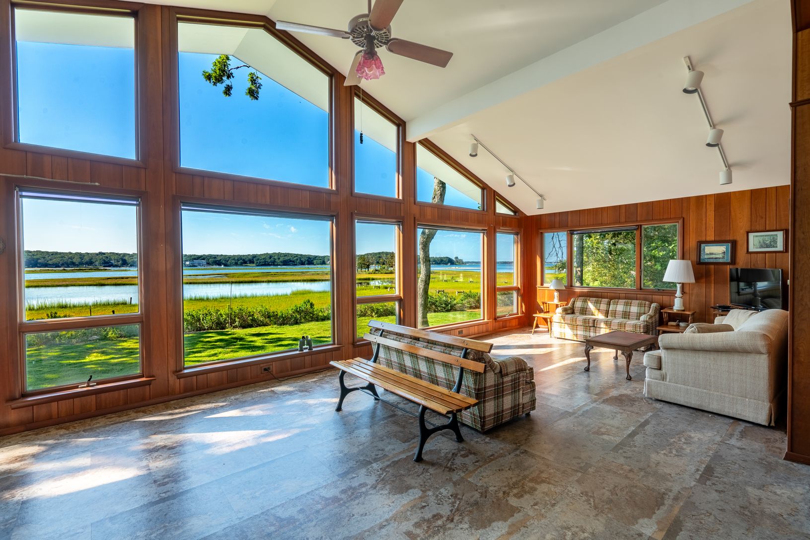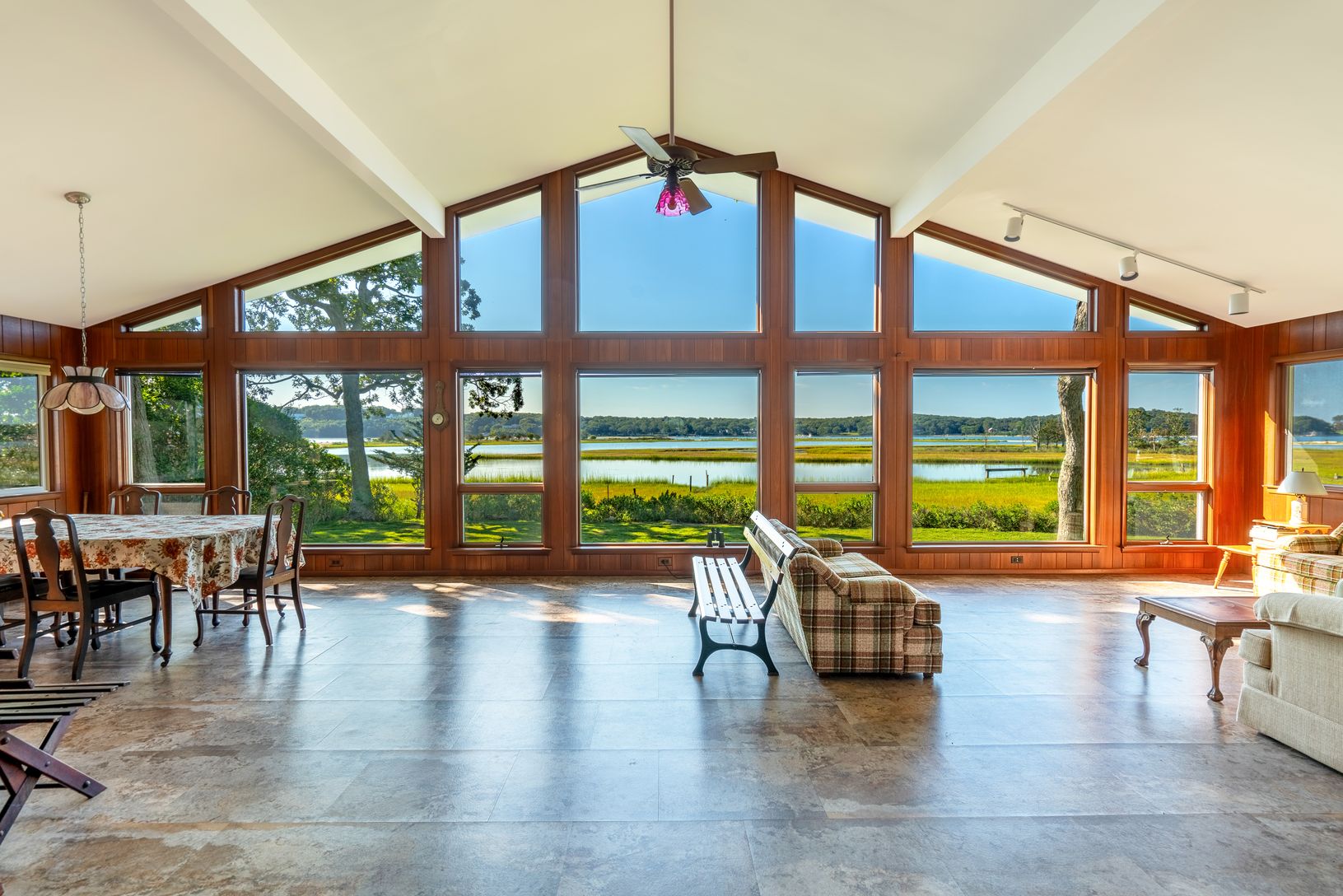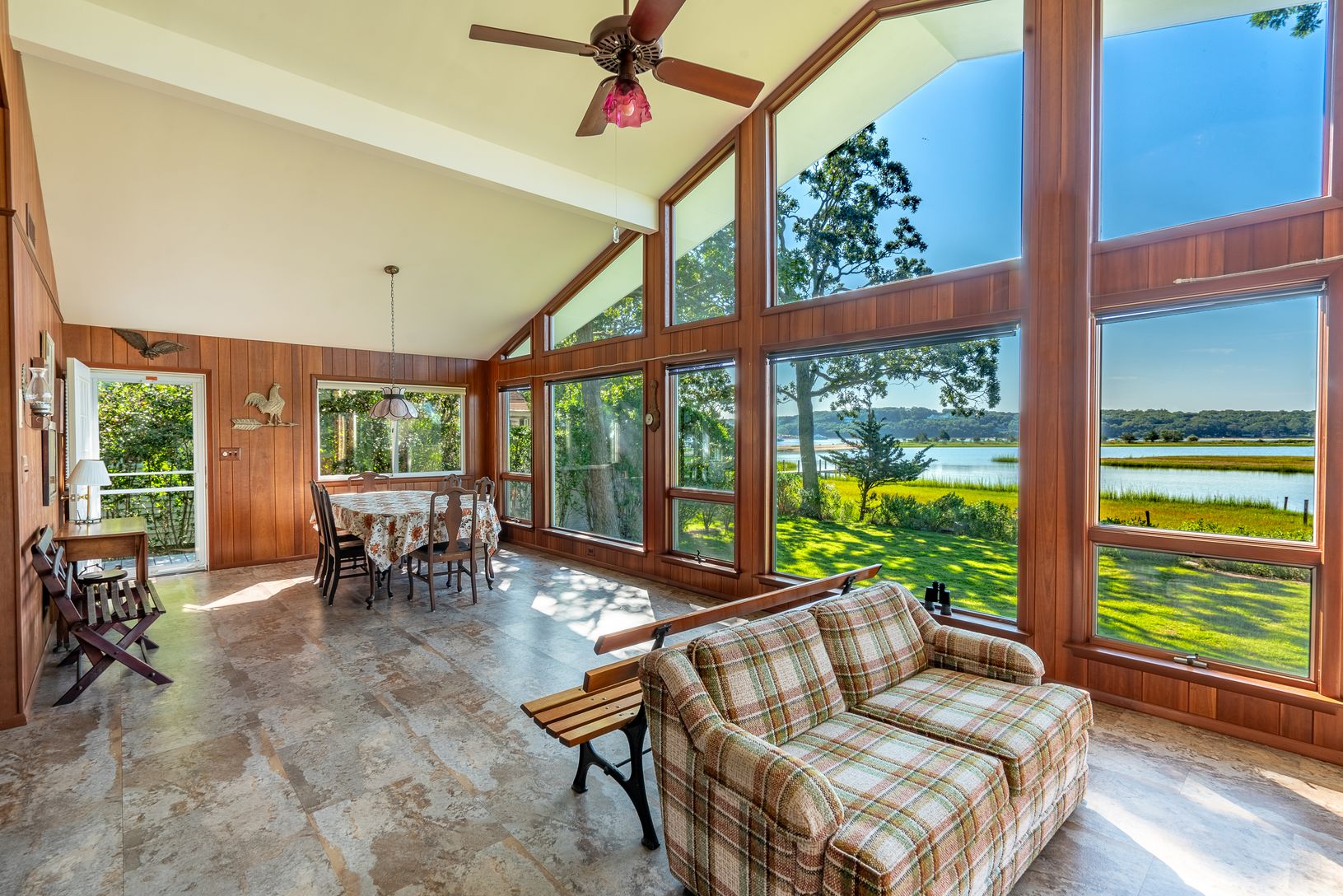 Take in expansive views overlooking Conklin Point across to Shelter Island from this waterfront cottage with three bedroom, one full bathroom, an open concept living and dining room area with a wall of glass windows to fully encapsulate the protected nature enclave leading out to the bay. Less than 500 feet feet from this home is the 20 acre, half mile beach peninsula and nature estuary which is owned by the Island