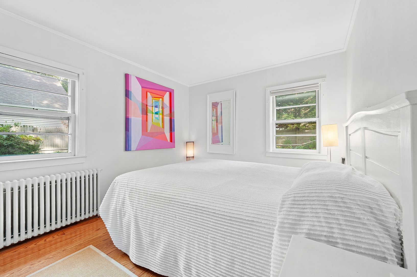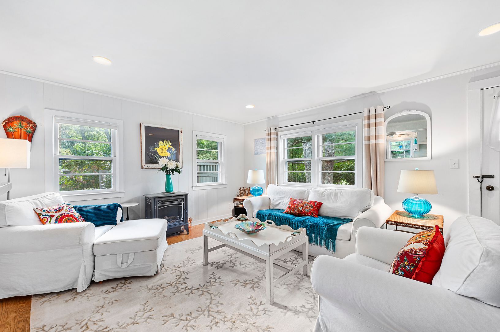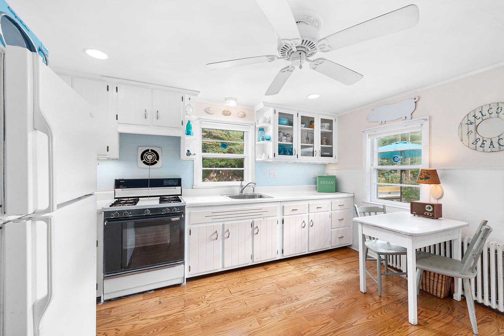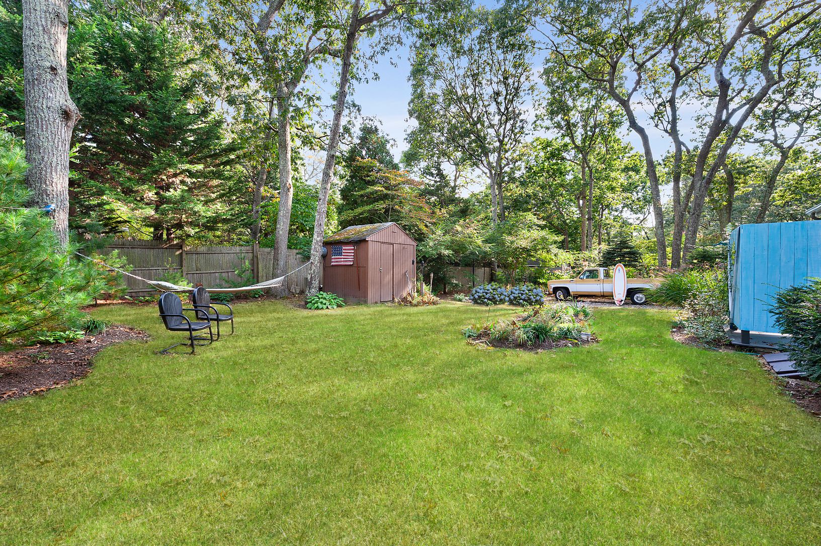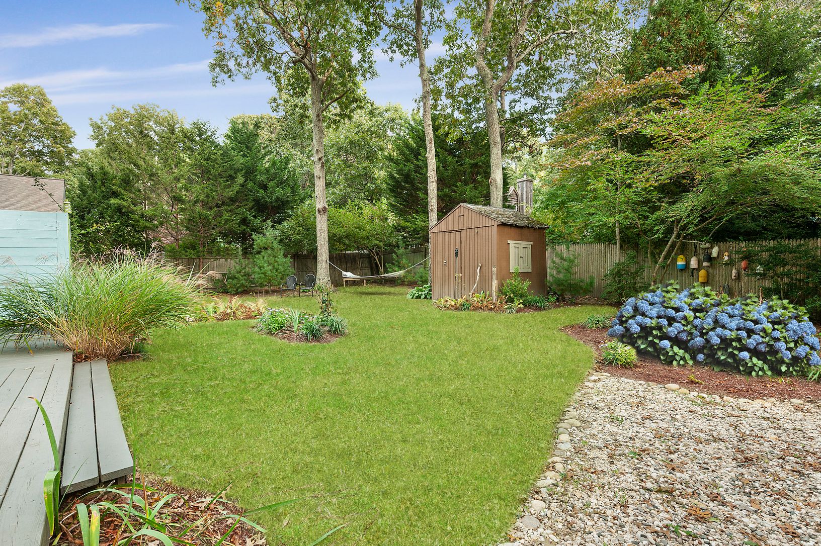 Quintessential East Hampton Cottage with charm galore. A gated driveway leads to a quiet property with casual deck areas, an oversized outdoor shower and a yard that can easily accommodate swimming already completely privatized by mature landscaping. Nicely positioned in Springs only 1.5 Miles from Maidstone Park Beach on a dead-end street, this quaint two bed one bath with lots of light, open kitchen/ living room and a dining island is the pe
