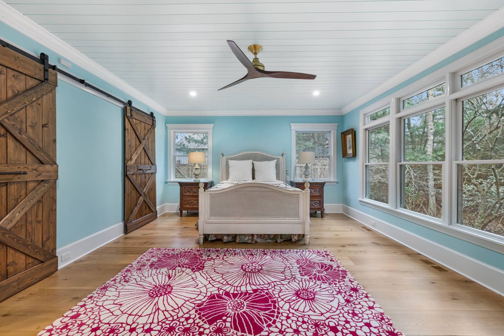 Situated in East Hampton's near Northwest on a shy half acre resides this well-built 4 bedroom 4 bath cedar shingled residence available for sale for the first time. The fact that it has been thoughtfully maintained is evident from the moment one drives up the Belgium block lined crushed blue stone driveway to view the tidy yard and experience the welcoming feel of the covered front porch. Proceeding inside, the entry foyer leads in multiple d