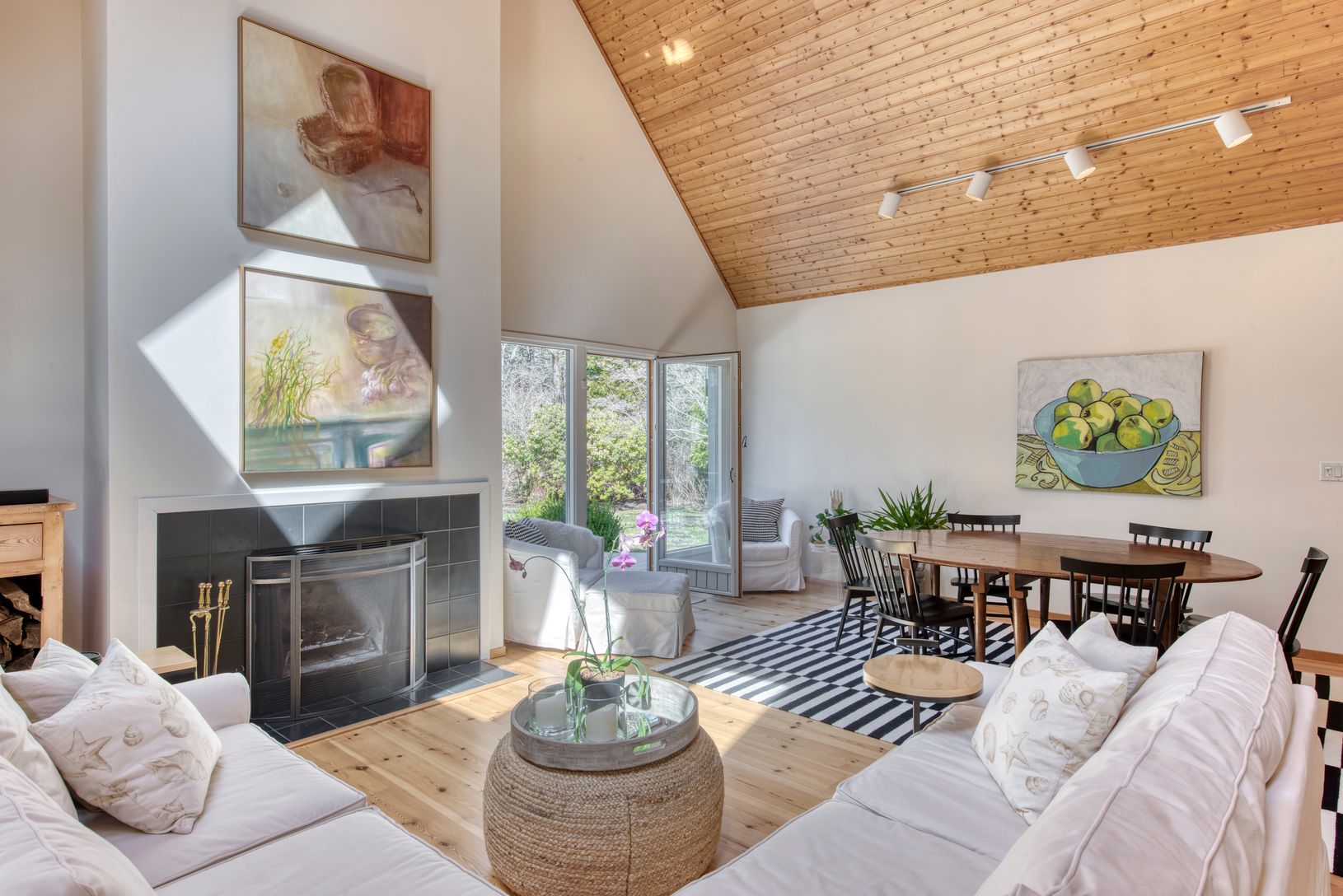 Well located on a quiet street in Wainscott just minutes to village, jitney, and ocean is this stylish turn key Hamptons home perfect for summer or year round . This warm and welcoming residence has an open floor plan for an easy living lifestyle. Step inside from the covered front porch to enter a foyer that serves as an excellent mudroom with direct access to a one car garage perfect for future expansion. Your eyes travel upward to see a dou