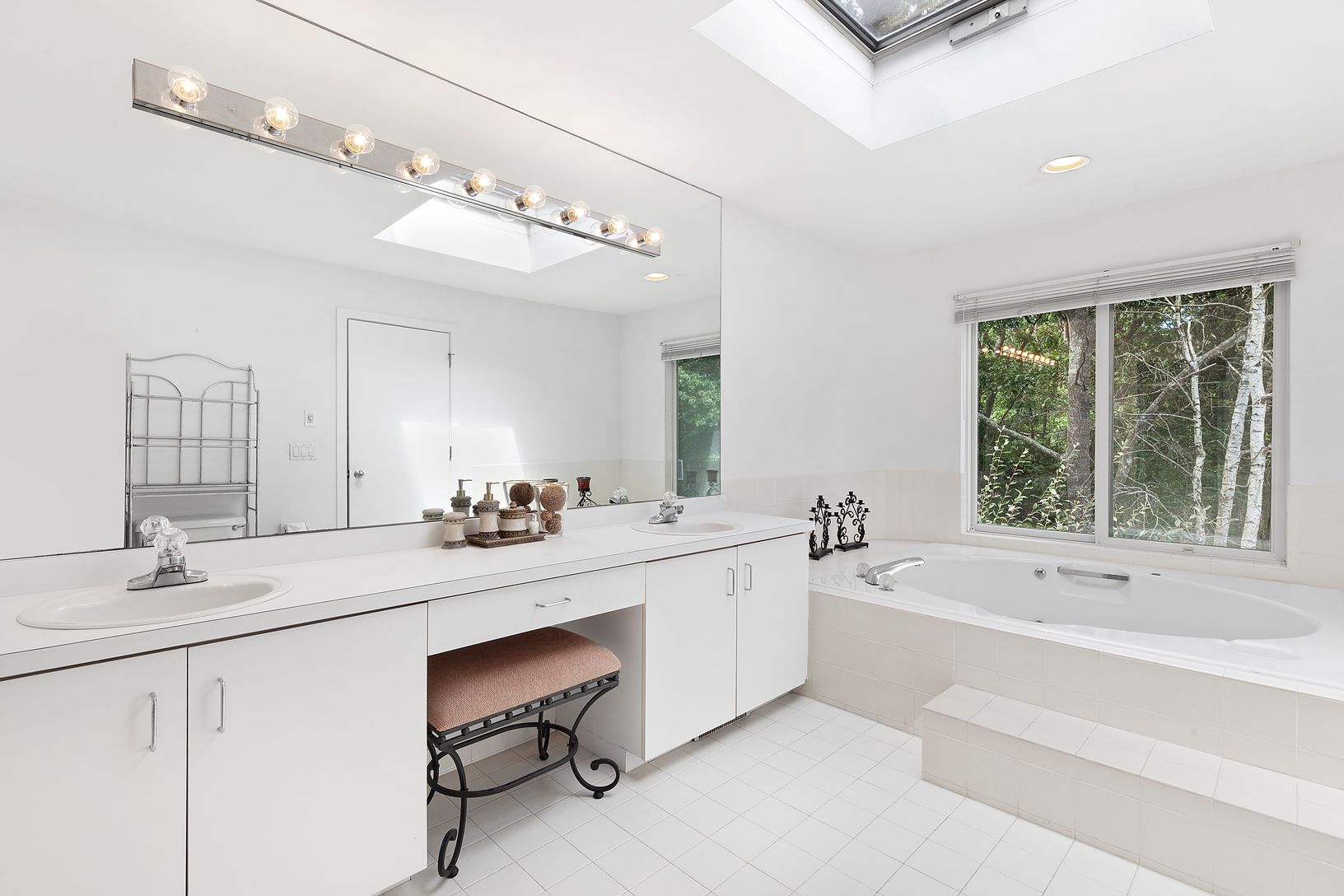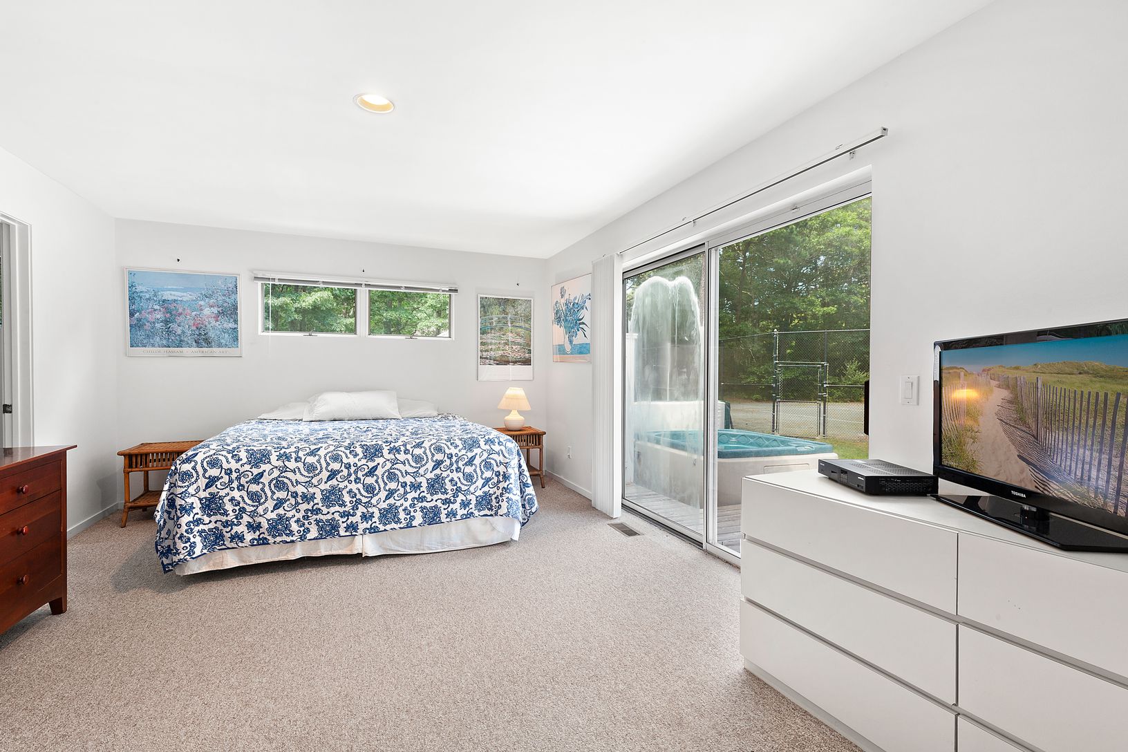 Great entertaining house that has it all. Two and a quarter acres, Solar heated Pool with expansive outdoor decking, Har-Tru Tennis, Basketball Ct. Hot Tub, Sunny open floor plan, Large living room with fireplace, Spacious kitchen, Downstairs master bedroom,Upstairs master bedroom suite private outdoor balcony, Downstairs master and two bedrooms. Has Quogue Village Beach Rights.