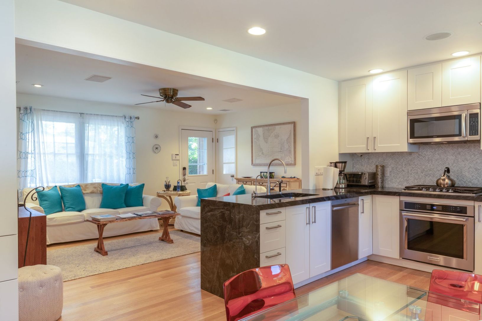 Turn key fully updated four bedroom, two bath smart home! The house has a lovely eat in kitchen with breakfast nook, Stainless steel appliances, large bright living room. A renovated separate space has a kitchenette, separate living area, large bedroom a full bath. A beautiful mother daughter in the heart of Hampton Bays, close to all!