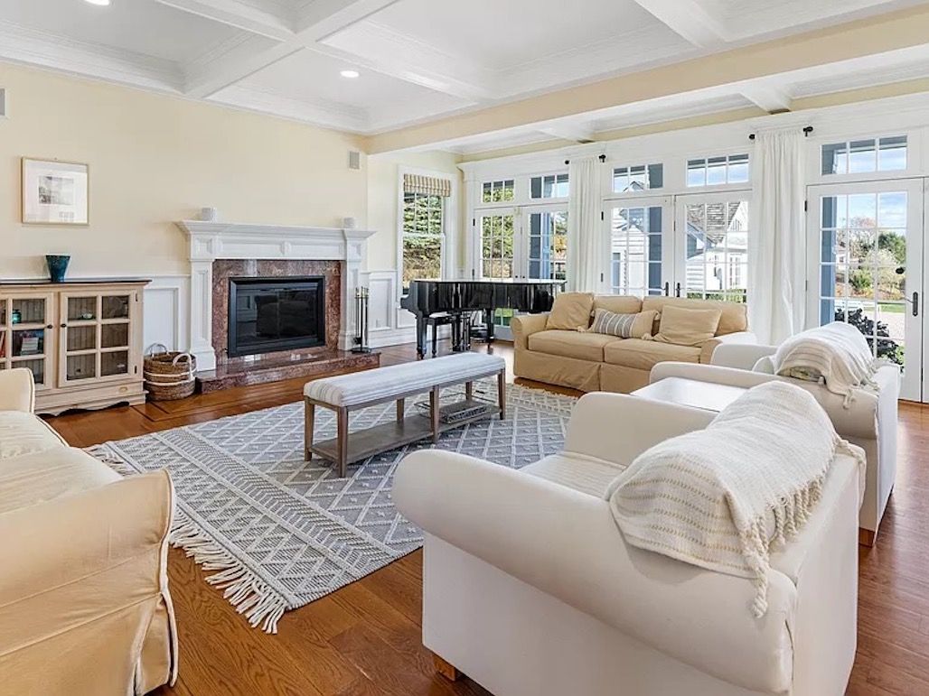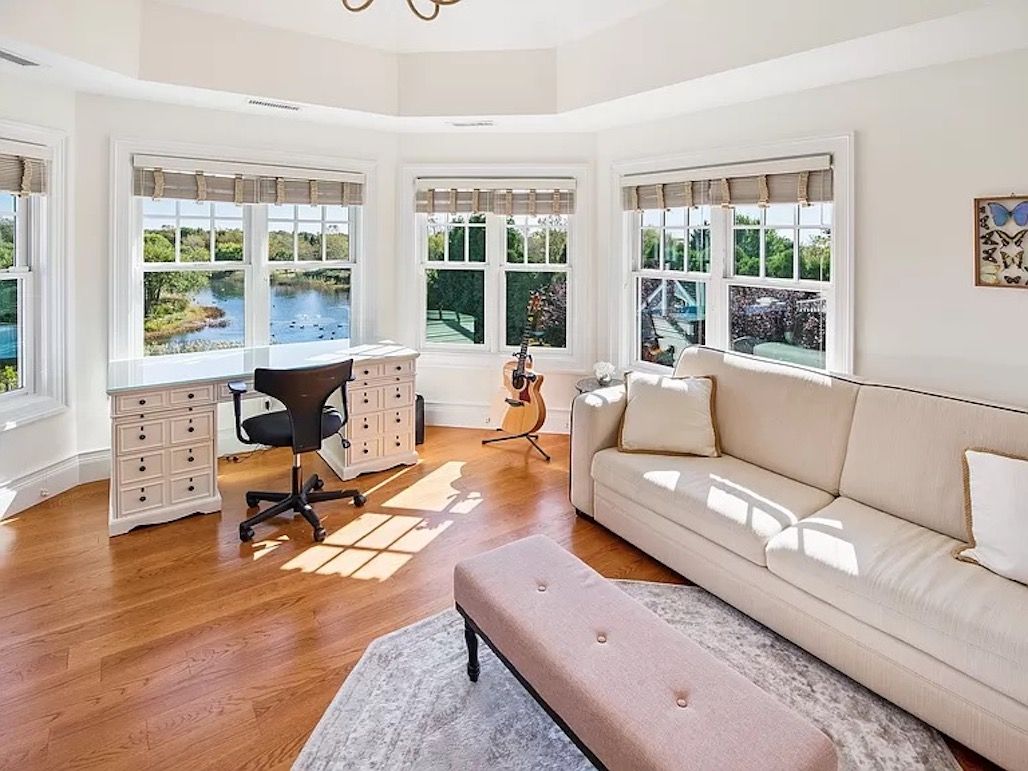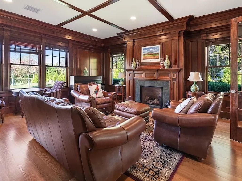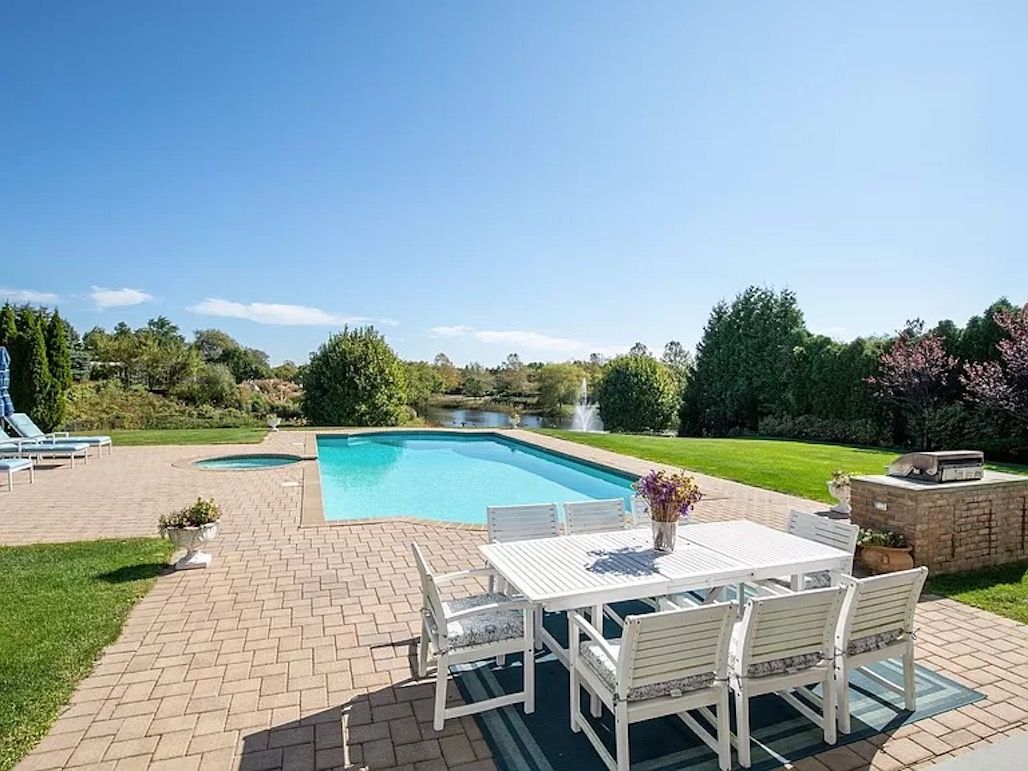 This immaculate 9,600 Sq. Ft. traditional home includes 6 bedrooms and 9.5 baths sited on 1.38 acres. An oversized entry foyer leads to a sprawling living room with fireplace and multiple accesses to the covered bluestone observation decks, outdoor kitchen, dining areas and stately pond views with private garden access. French doors lead into the living room with wet bar, additional fireplace and outdoor access to a covered entertaining deck f