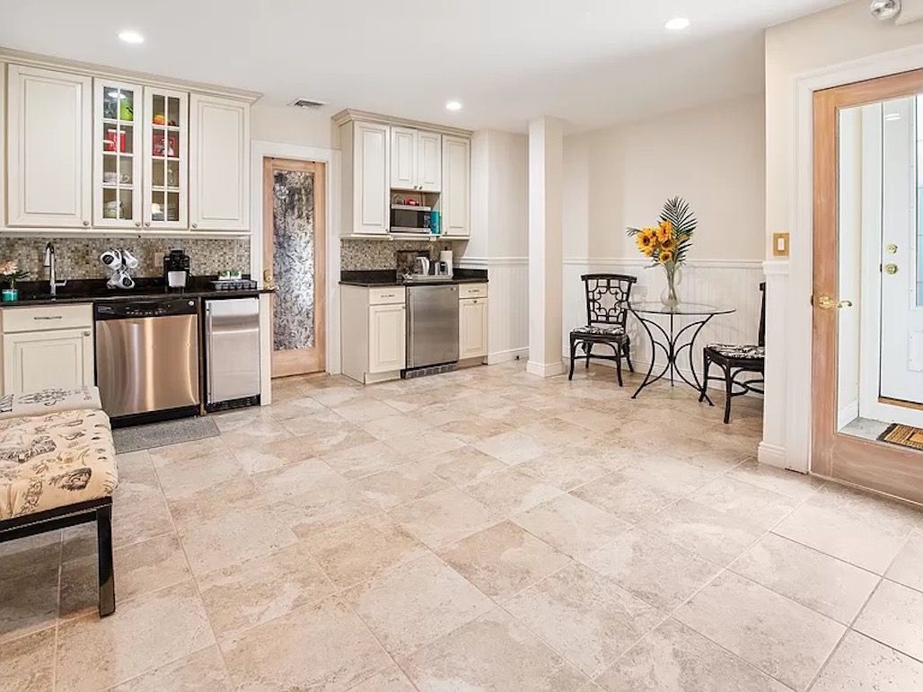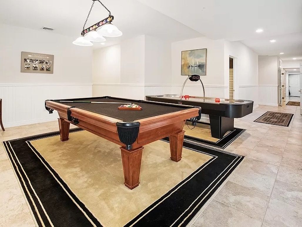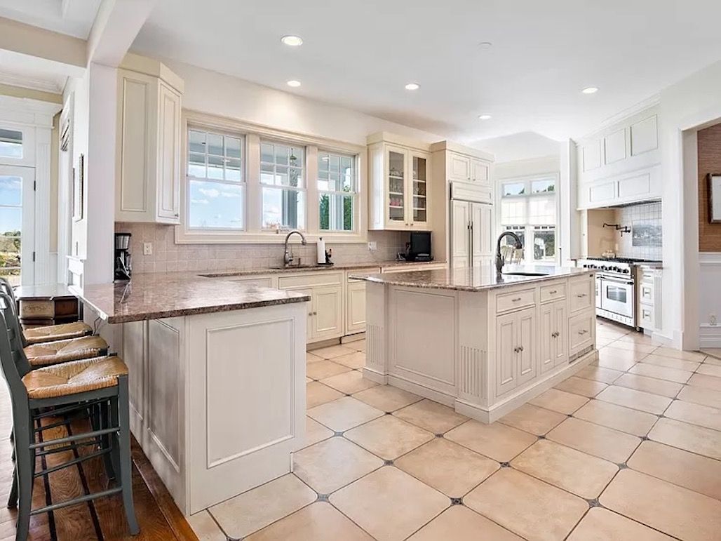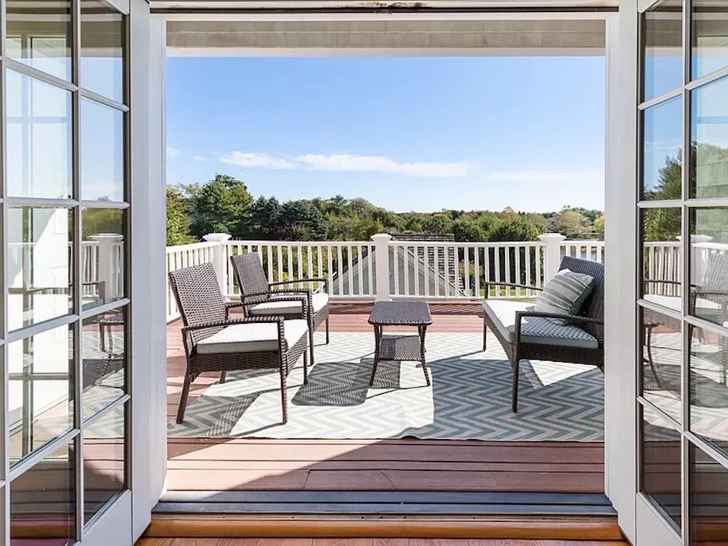 This immaculate 9,600 Sq. Ft. traditional home includes 6 bedrooms and 9.5 baths sited on 1.38 acres. An oversized entry foyer leads to a sprawling living room with fireplace and multiple accesses to the covered bluestone observation decks, outdoor kitchen, dining areas and stately pond views with private garden access. French doors lead into the living room with wet bar, additional fireplace and outdoor access to a covered entertaining deck f