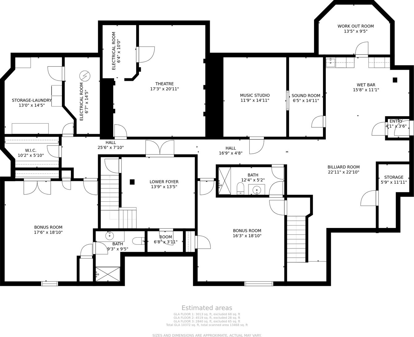 Bonus room, Breakfast area, Exercise room, Family room/den, Great room, In-law suite/private guest quarters, Laundry room, Library, Media room, Office, Study