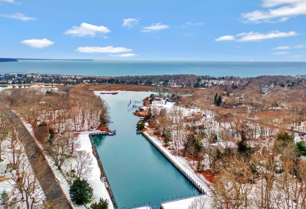 Fabulous East Hampton home two blocks to the water, gorgeous sunsets, and boat slip #23. The home features a screened in porch perfect for relaxing and dining as well as three tiers of decking for outdoor entertaining. Set in a beautiful waterside neighborhood on .46 acres, the 2,200 sq.ft. home is nestled within mature trees and at its center a pool surrounded by decking is ideal for relaxing. Inside the 2-story traditional home bright and ai