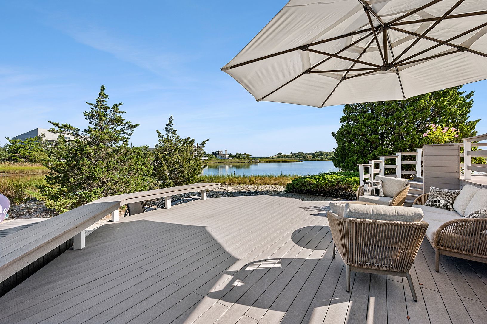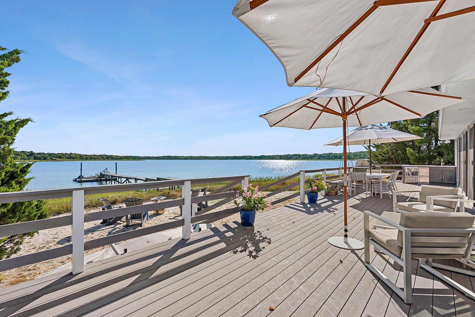 Positioned on the edge of Cold Spring Pond, this Southampton residence blends the serenity of waterfront living with proximity to the most renowned courses in the game. Just minutes from Shinnecock Hills, Sebonack, and National Golf Links of America, the home serves as an effortless base for the U.S. Open, combining tournament convenience with the privacy of a true Hamptons retreat. From sunrise over the pond to evenings by the fire pit, every