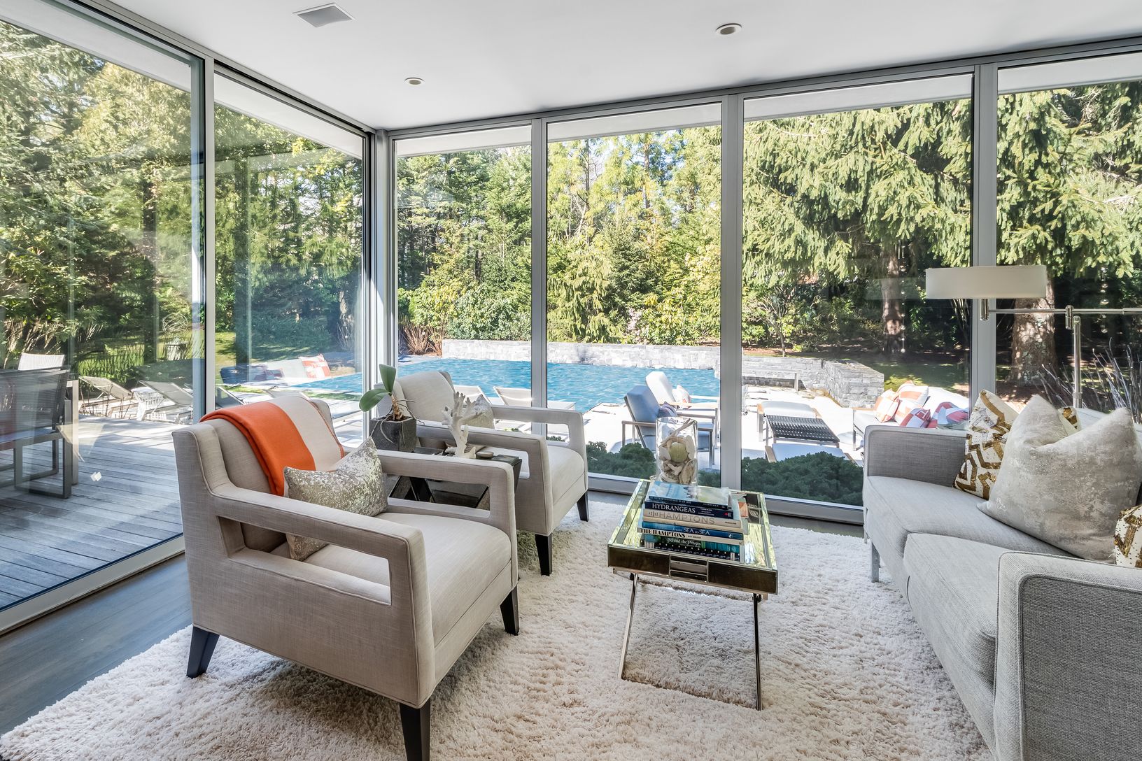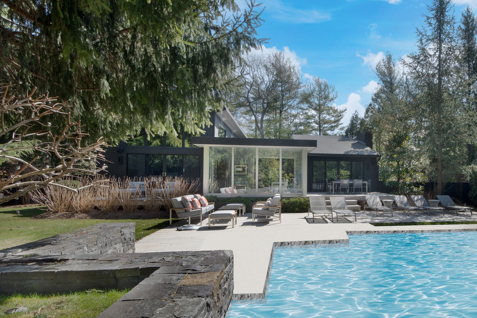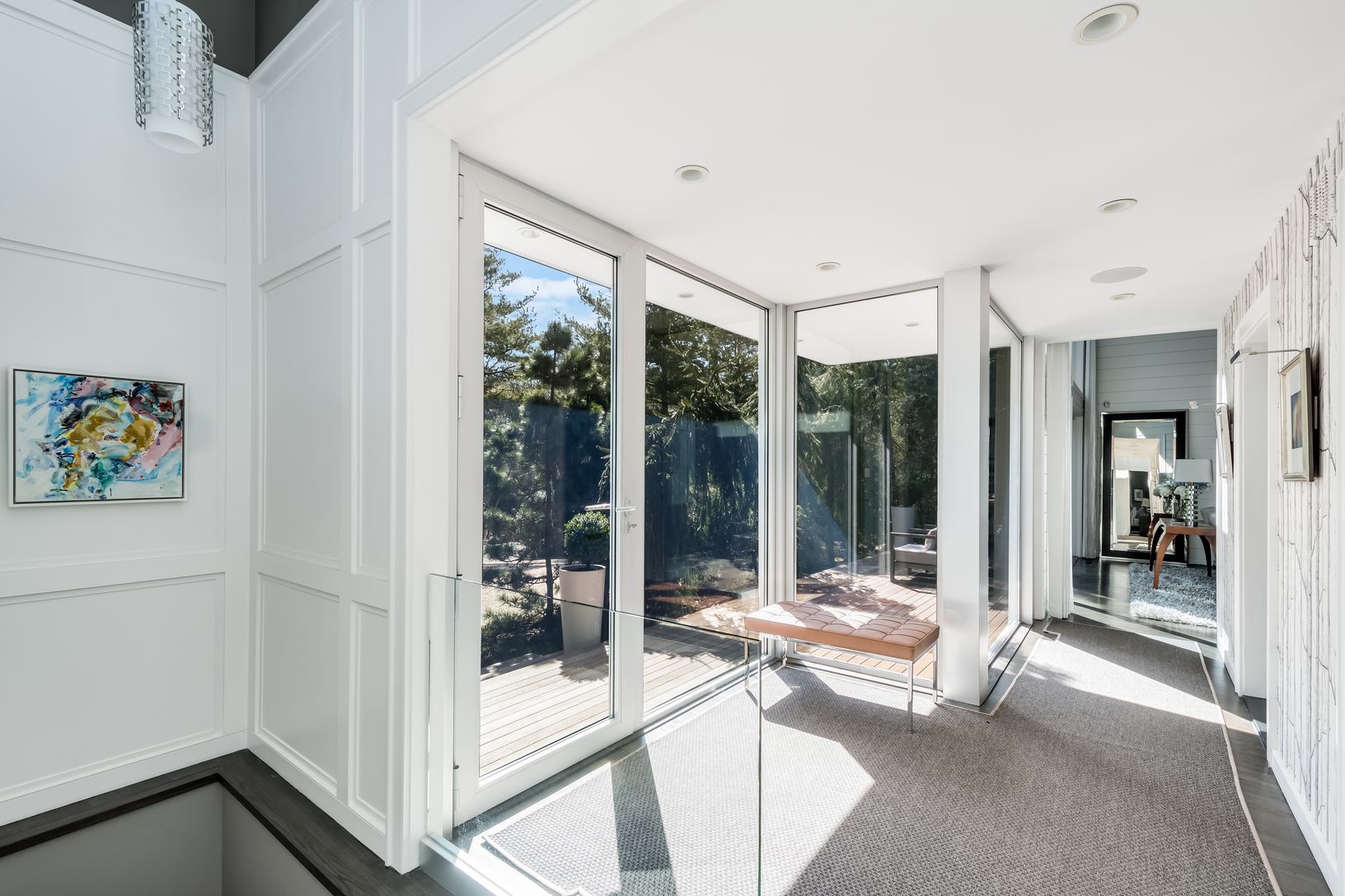 RR# 24-335 Renovated from top to bottom, this 3 bedroom/ 2.5 bath contemporary has been meticulously updated. Soaring, bright living room has 15' vaulted ceilings, shiplap paneling, quartz clad fireplace and sliders to the front and back decks. Separate dining room and floor to ceiling glass sunroom offering true indoor/ outdoor living. Newly renovated kitchen with SubZero and Wolff stainless appliances. Primary en suite occupies the rear of