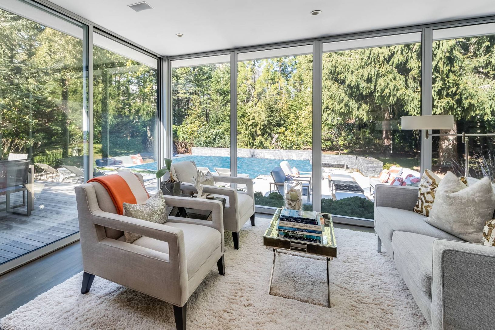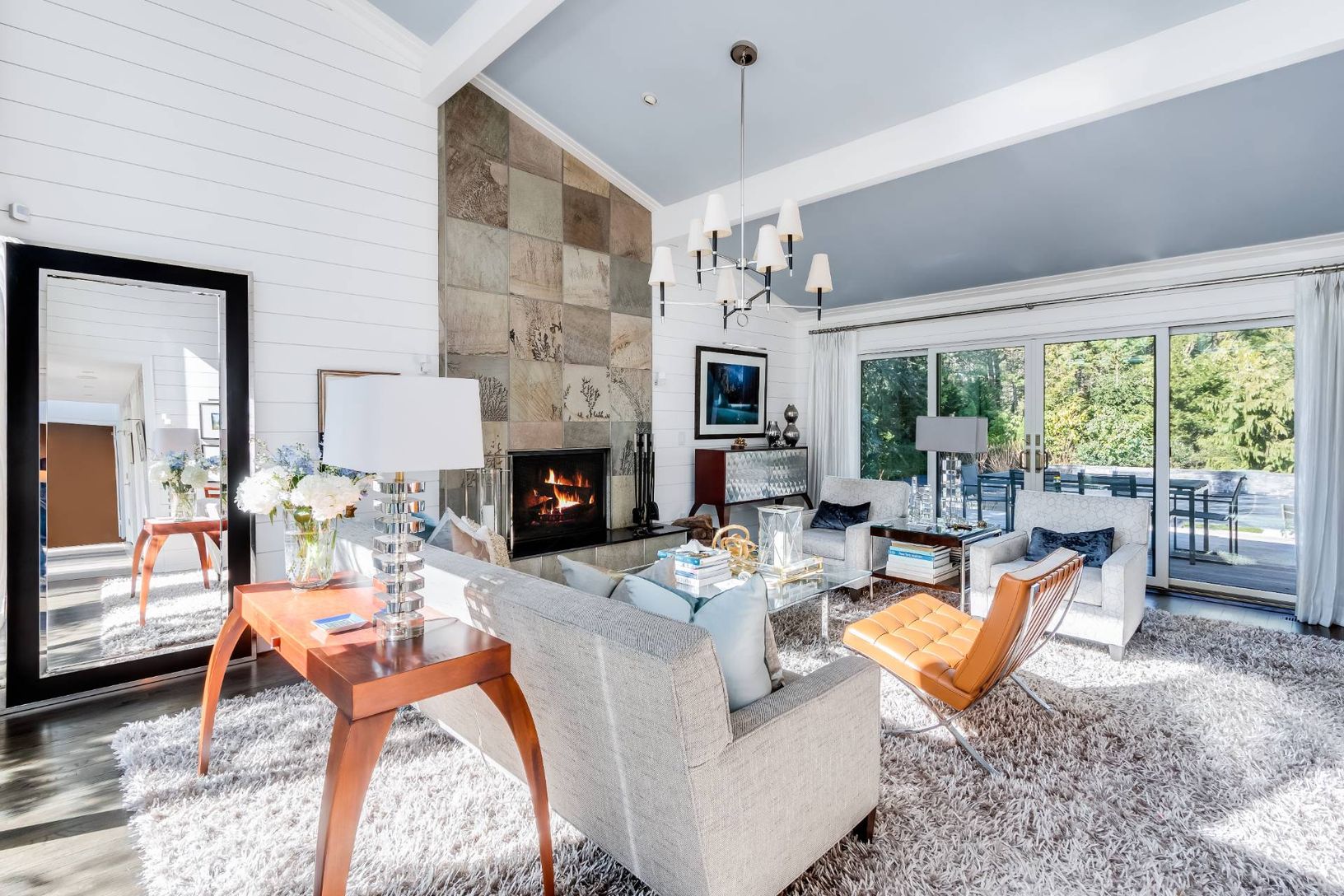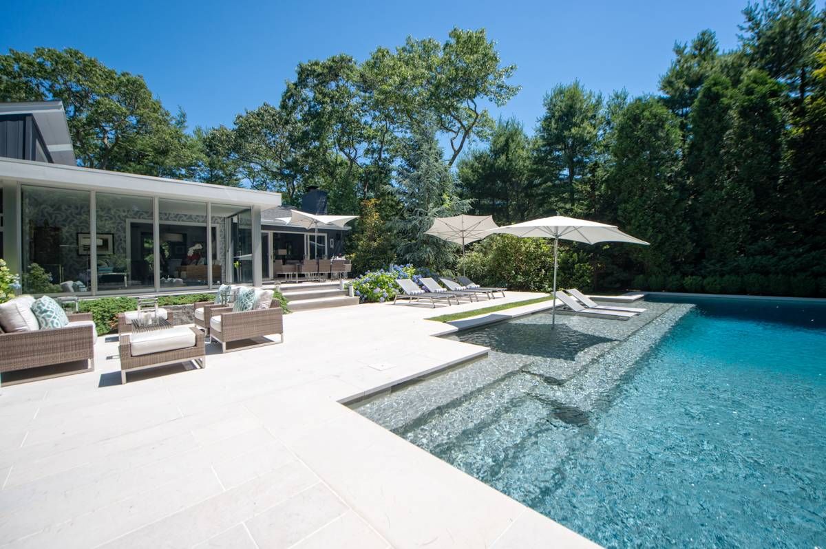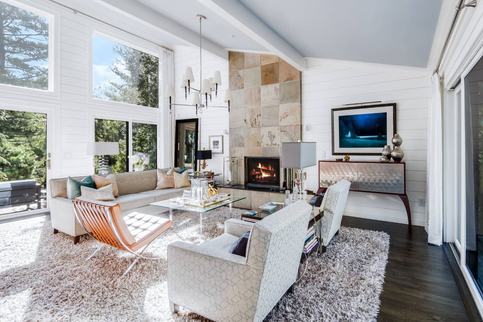Thoughtfully renovated from top to bottom, this pristine 3 bedroom/ 2.5 bath contemporary has been meticulously updated. Soaring, bright living room has 15' vaulted ceilings, shiplap paneling, quartz clad fireplace and sliders to the front and back decks. A separate elegant dining room adjacent to a floor to ceiling glass sunroom offers true indoor/ outdoor living. Newly renovated kitchen has marble countertops, SubZero, Miele and Wolff stainl