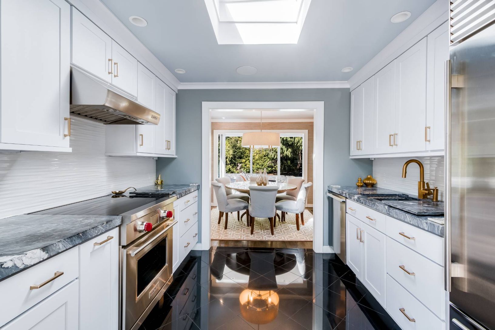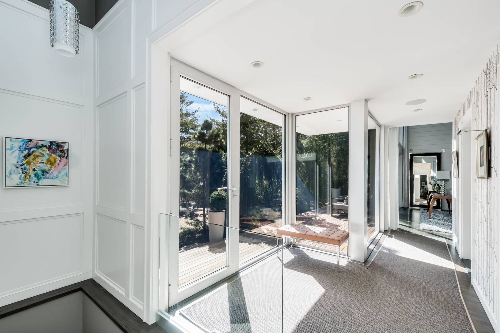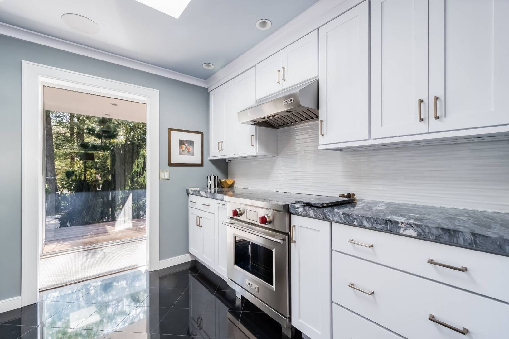 Thoughtfully renovated from top to bottom, this pristine 3 bedroom/ 2.5 bath contemporary has been meticulously updated. Soaring, bright living room has 15' vaulted ceilings, shiplap paneling, quartz clad fireplace and sliders to the front and back decks. A separate elegant dining room adjacent to a floor to ceiling glass sunroom offers true indoor/ outdoor living. Newly renovated kitchen has marble countertops, SubZero, Miele and Wolff stainl