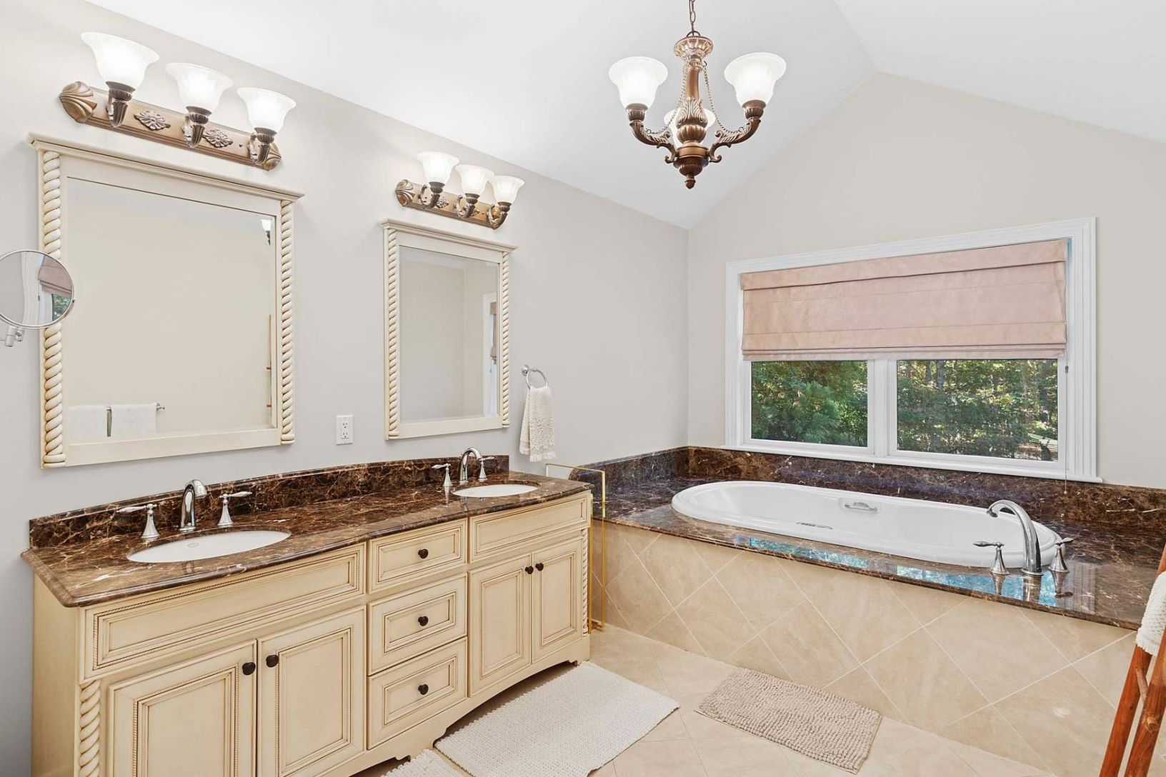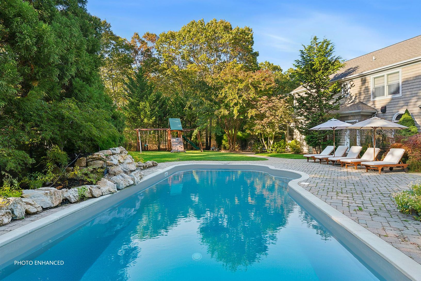 Tucked at the end of a quiet street near East Landing and West Landing Bay Beaches, this beautifully updated 4,700 +/- sq. ft. (plus a 2,259 +/- sq. ft. unfinished basement) residence offers exceptional privacy and access to the best of Hampton Bays living. Set on a shy acre with access to Red Creek Park's extensive trail system, the property enjoys a peaceful, wooded setting with direct access to 8 NEW pickleball courts, 3 NEW tennis courts,