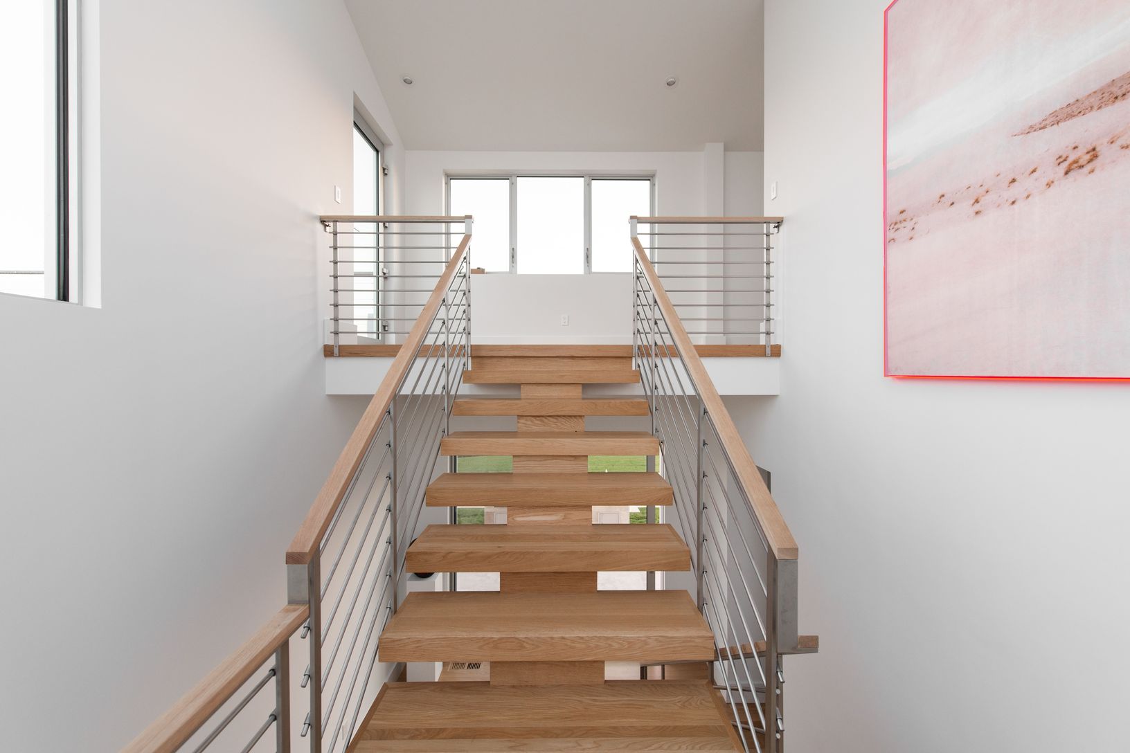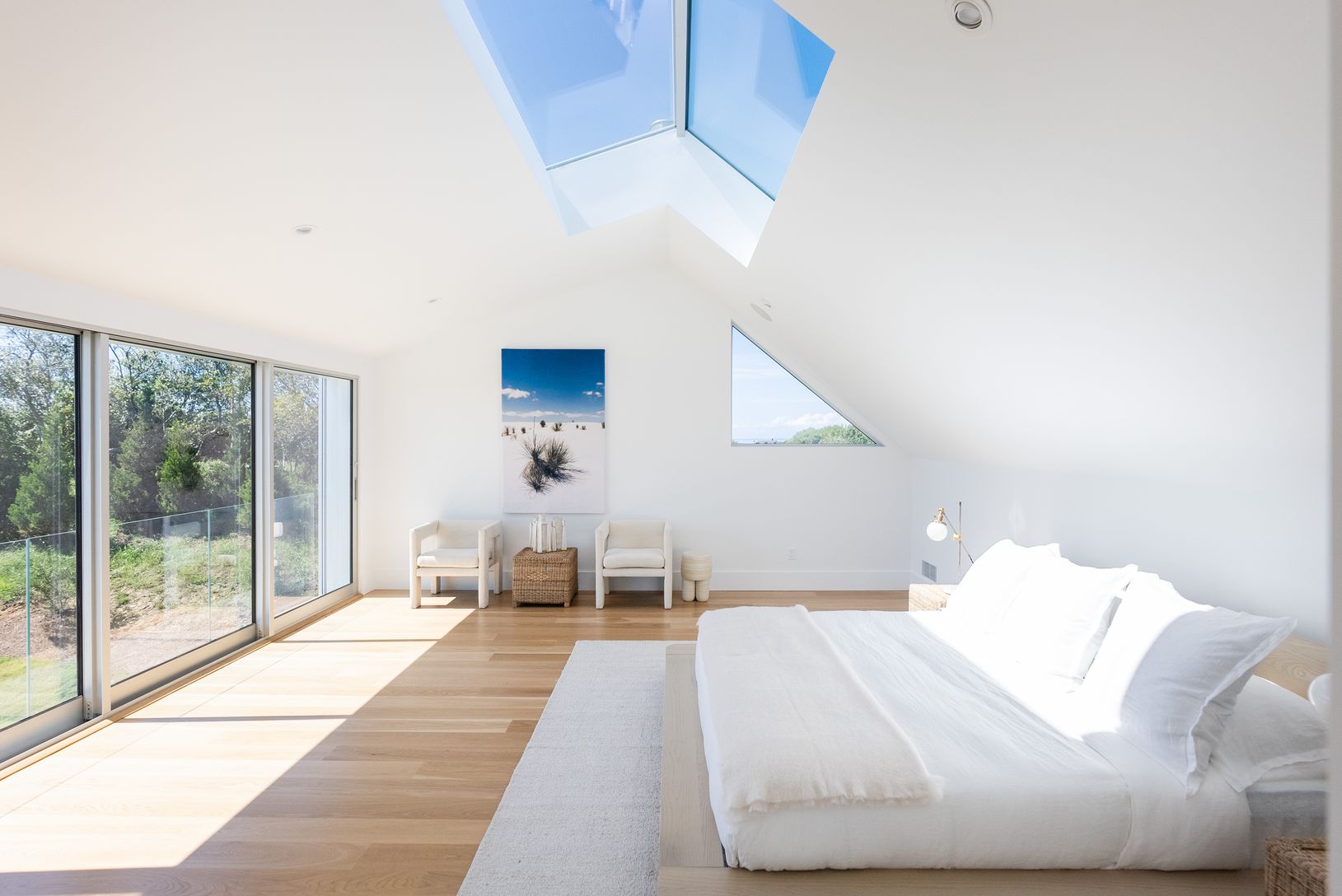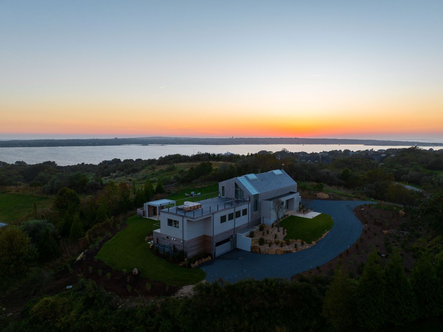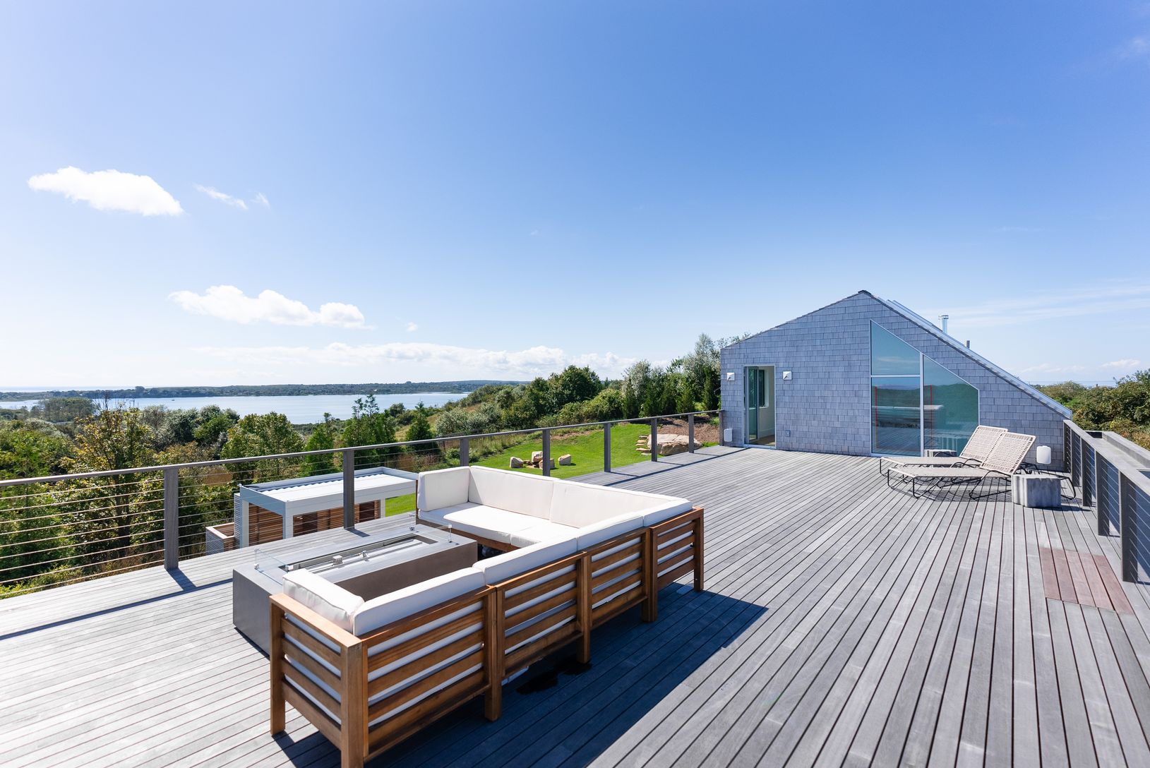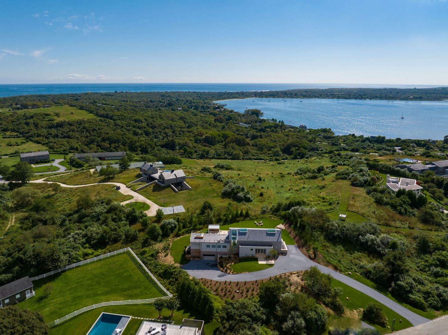 Just completed, be the first to call this Modern new construction home, with stunning water views on a quiet cul-de-sac atop Startop Ranch. With elevations of more than 140 feet, views include the Atlantic Ocean to the south, Lake Montauk to the west, Block Island Sound to the north and Montauk State Park to the East. With three levels of finished living space, the entry level features a gourmet custom kitchen with large center island, formal