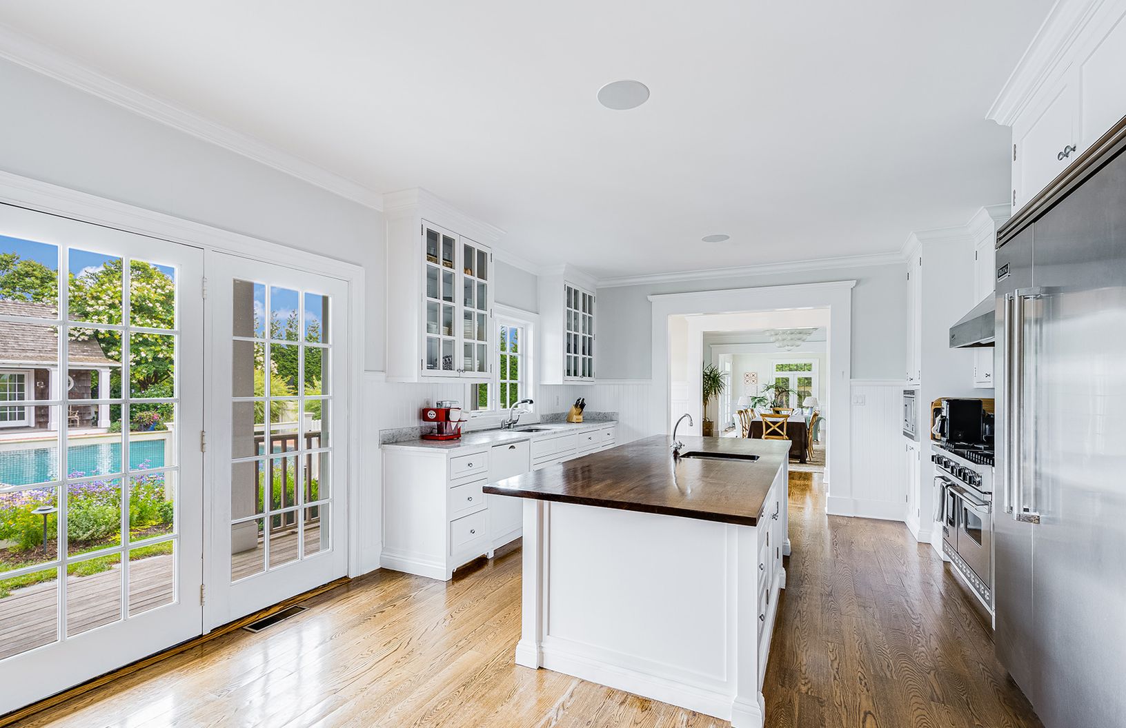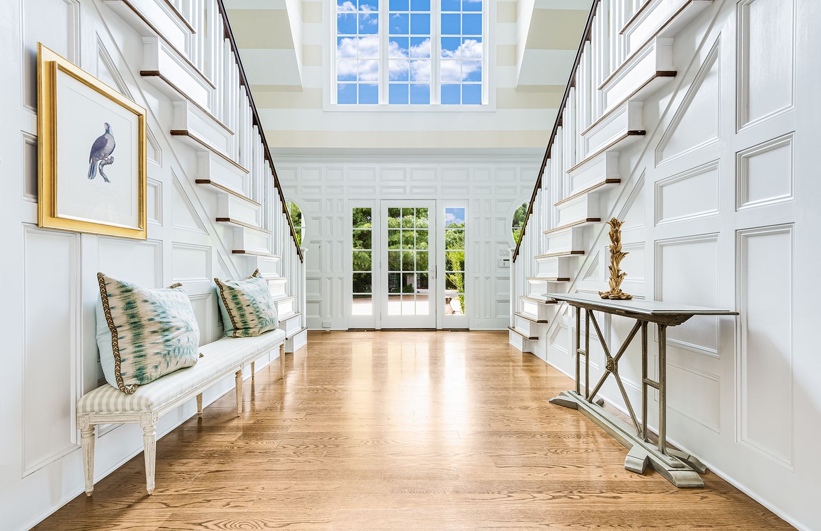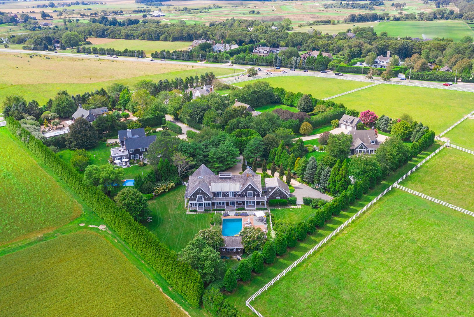 Situated at the end of a private cul-de-sac and backing a beautiful reserve on two sides in Bridgehampton’s horse country, this immaculate and luxurious property features an expansive 6,000± sf postmodern on a perfectly manicured 1.00± acre. An exceptional setting with gorgeous views over acres of horse pastures, just moments to village amenities and ocean beaches. The private, privet hedged grounds feature lush gardens, specimen plantings, es
