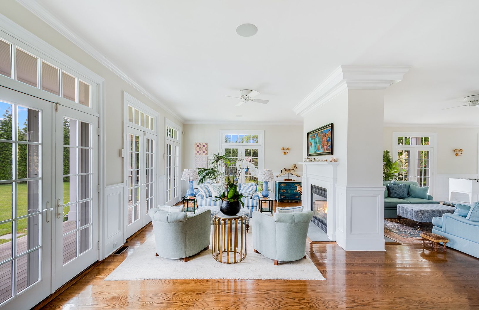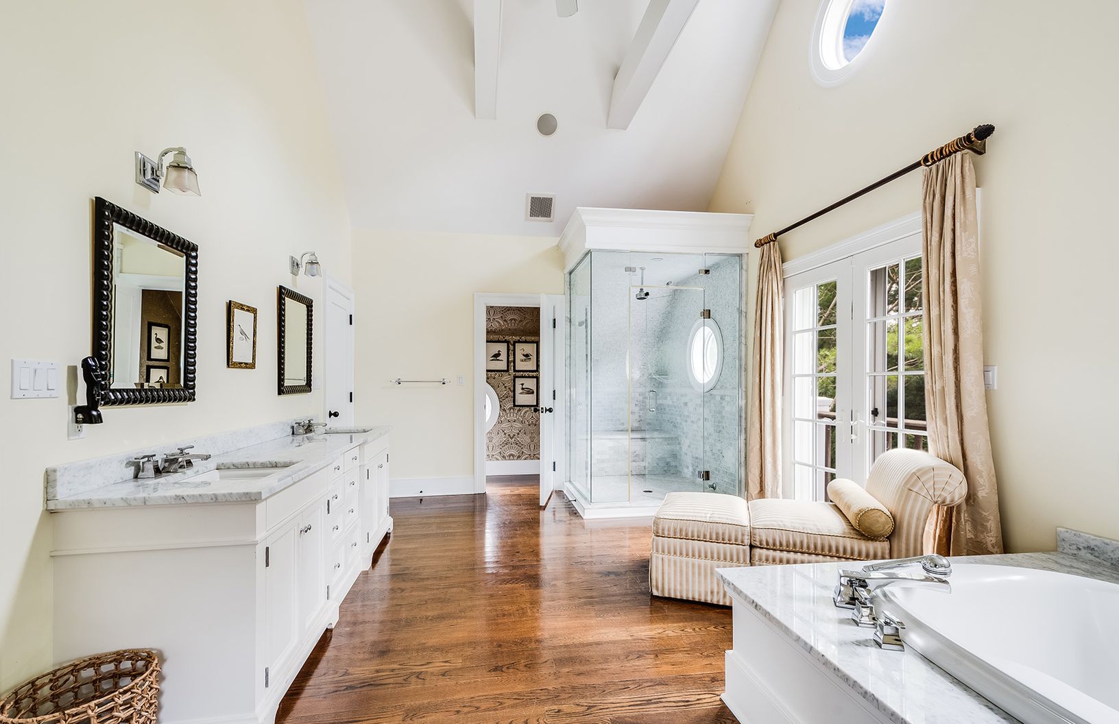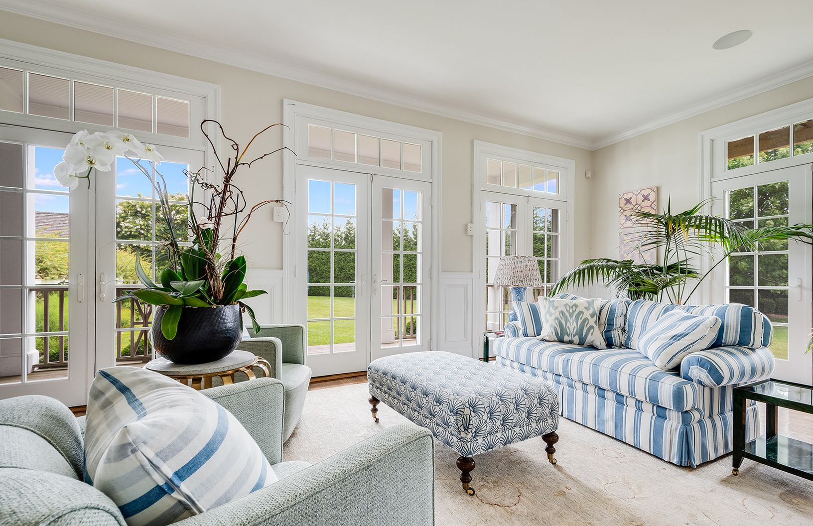 Situated at the end of a private cul-de-sac and backing a beautiful reserve on two sides in Bridgehampton’s horse country, this immaculate and luxurious property features an expansive 6,000± sf postmodern on a perfectly manicured 1.00± acre. An exceptional setting with gorgeous views over acres of horse pastures, just moments to village amenities and ocean beaches. The private, privet hedged grounds feature lush gardens, specimen plantings, es