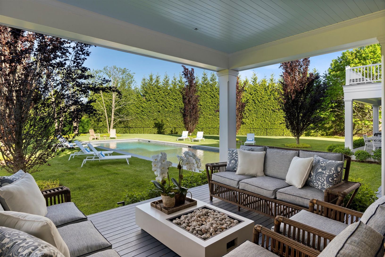 Welcome to 37 Tiffany Way, a home meticulously remodeled and expanded in 2023 and offered fully furnished! This estate boasts 9,400 square feet of designer living space and is surrounded by the natural beauty of Water Mill's horse country. The centerpiece is a new 55-foot heated gunite pool and sprawling covered porches ideal for outdoor gatherings. A Viking kitchen, grill, and fire pit area enhance the al fresco experience. Inside, you are we