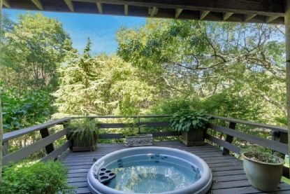 Lush, private retreat in Southampton. Incredible pool setting amidst spectacular landscaping. Quiet, tranquil oasis outside with a charming, French Country vibe inside. The 4 bedroom, 3 bath home is in excellent condition and is wrapped by decking for lounging and alfresco dining. you are immersed in nature. Hot tub, outdoor shower and walking paths on the property add to the appeal. The custom, 45 foot gunite pool is heated and has an automat