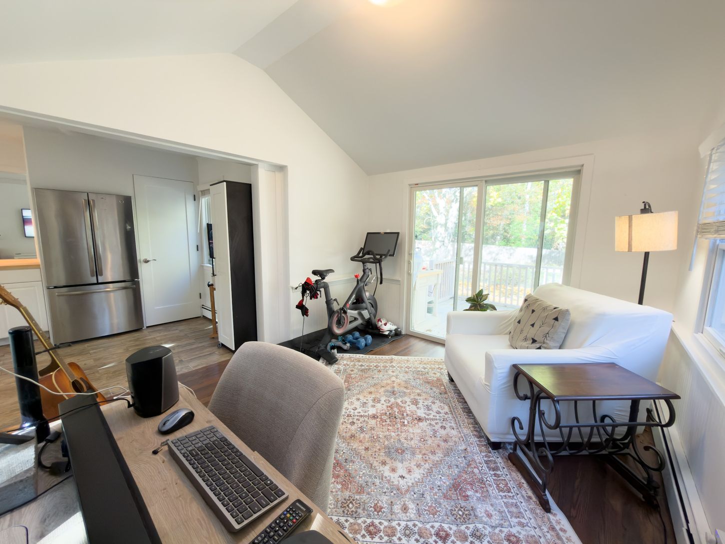 Nestled in a quiet, sought-after neighborhood just minutes from Hampton Bays Village and only 15 minutes to Southampton Village, this light-filled home blends modern updates with inviting coastal charm. The open layout welcomes you with a bright kitchen, seamlessly flowing into a vaulted-ceiling living area with warm wood floors. A sunny den or home office provides an ideal work-from-home or flex space. Step outside to enjoy a sunny deck and s