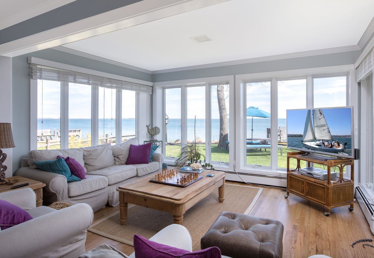 Relax and enjoy this beautifully appointed bay front house w/ private beach and stunning views of Orient Harbor, Bug Light and Shelter Island. Moor your boat in the bay; kayak, swim, fish or chill on the decks and porches. Basement game room with Ping-Pong, TV and games. Conveniently located near Greenport shopping, restaurants, ferries, farm stands, vineyards.