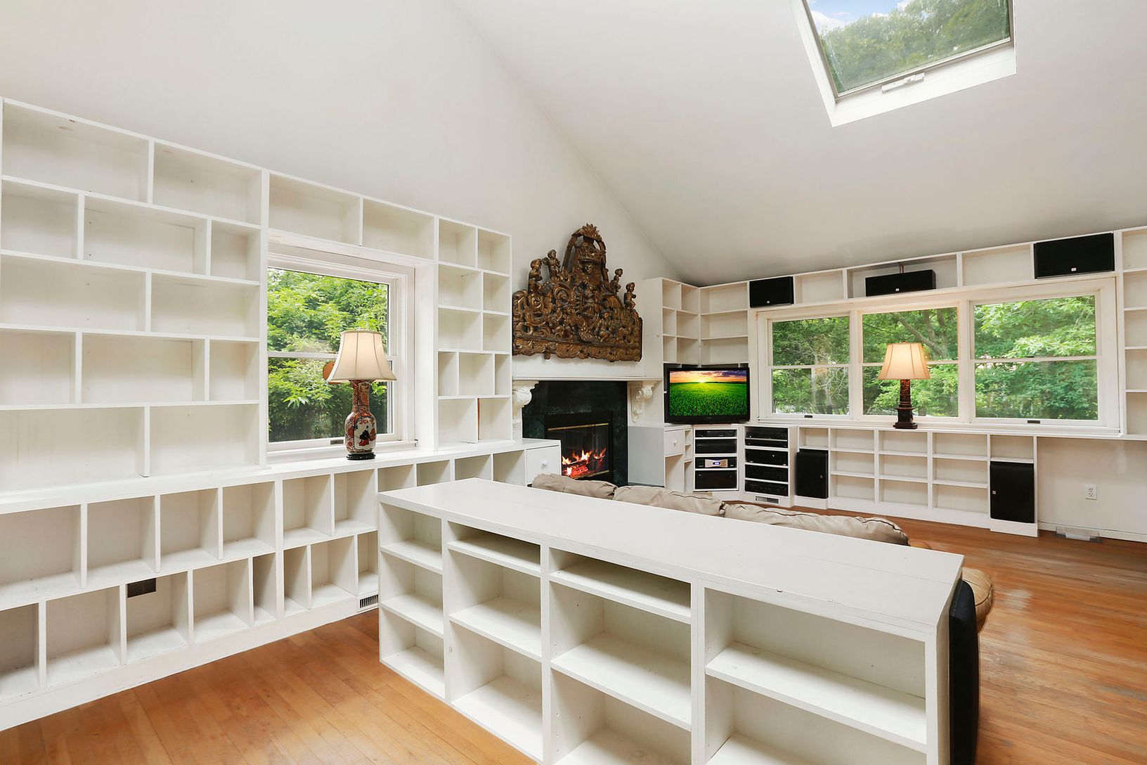 Off Lumber Lane, and seconds from all the action. This Bridgehampton ranch styled home has 3 bedrooms and 2 baths. This wonderful loft-like home features soaring cathedral ceilings and light filled rooms. Open great room with fireplace and kitchen. The master bedroom has two large closets, its own bath, and sliding doors that open out to the private deck. There is an attached 2 car garage and full basement that offer expansion potential. The h