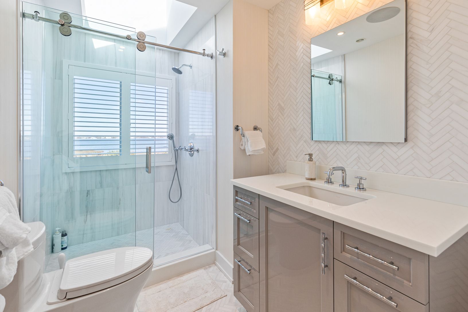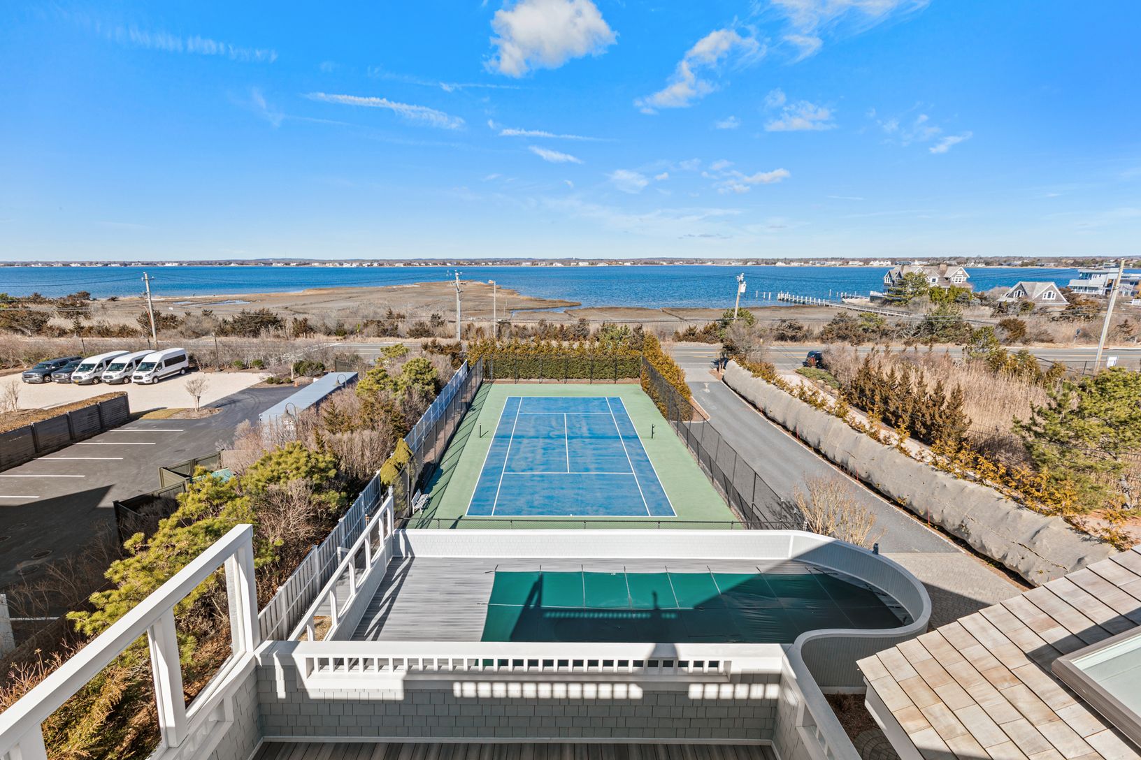 Introducing 375 Dune Rd, A One-Of-Kind beachfront sanctuary located close to New York City and just minutes from a private Airport , boasting sublime ocean and bay views with direct beach access. This 5 bedroom, 5 bath home is saturated with natural light and water views from every room. There are 2 bedroom suites on the bayside of the home, each with a private balcony overlooking the gunite pool, all weather tennis court with a magnificen