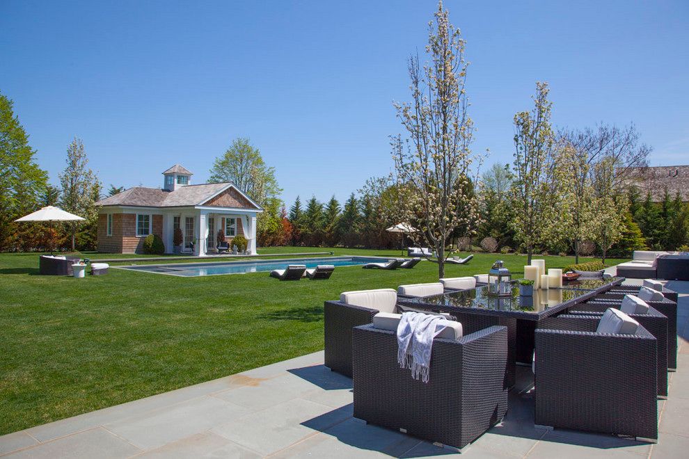 Nearly 3 acres on iconic Ocean Road hosts a sensational new 7 bedroom manse, now being offered exquisitely furnished, which is destined to become one of the significant estates of Bridgehampton South. An allee of stately Linden's forms a canopy above a gated drive past the all weather 60' X 120' tennis court set within the front lawn to a 9,100 SF+/- shingled traditional, warmed by 8 fireplaces and having all the finishes and amenities that h