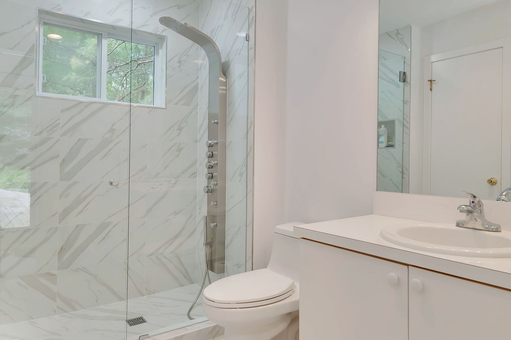This bright and airy four bedroom contemporary offers space and light in Northwest Woods. Enter into a large open living room with double height ceilings and wall of windows leading you to the wonderful backyard with new decking and heated pool. The over-sized master suite on the second floor provides the utmost privacy. Easy garden maintenance allows you to relax and enjoy your peaceful location - a quiet street convenient to the village of