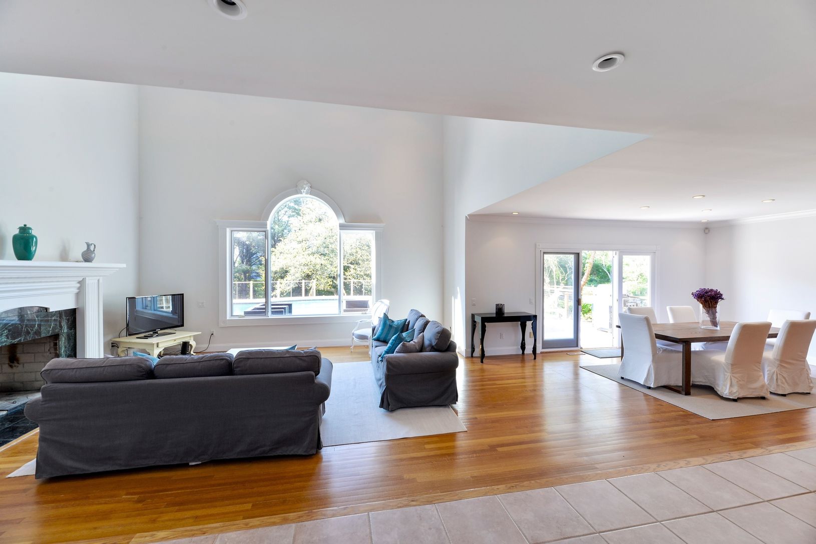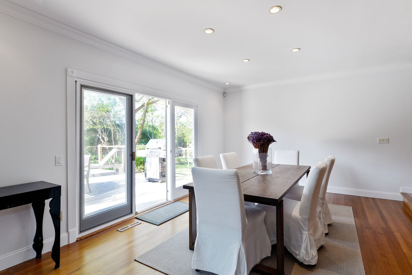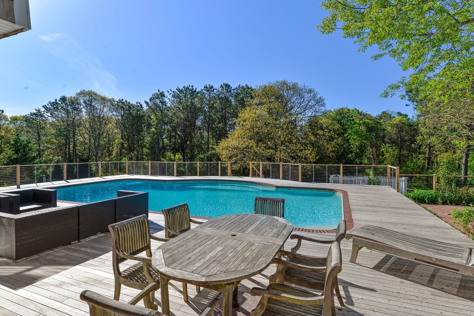 Ready to summer in the Hamptons? This is new to the market and a fabulous value! It is an elegant Traditional Mansard-style with an open floor plan sits on a sunny landscaped shy acre+/-. Located in the quiet neighborhood known as "The Highlands" it's just 7 minutes to the village and beaches. A two-story entrance leads into a spacious vaulted living room with fireplace, dining area and French country kitchen all overlooking a sunny mahogany d
