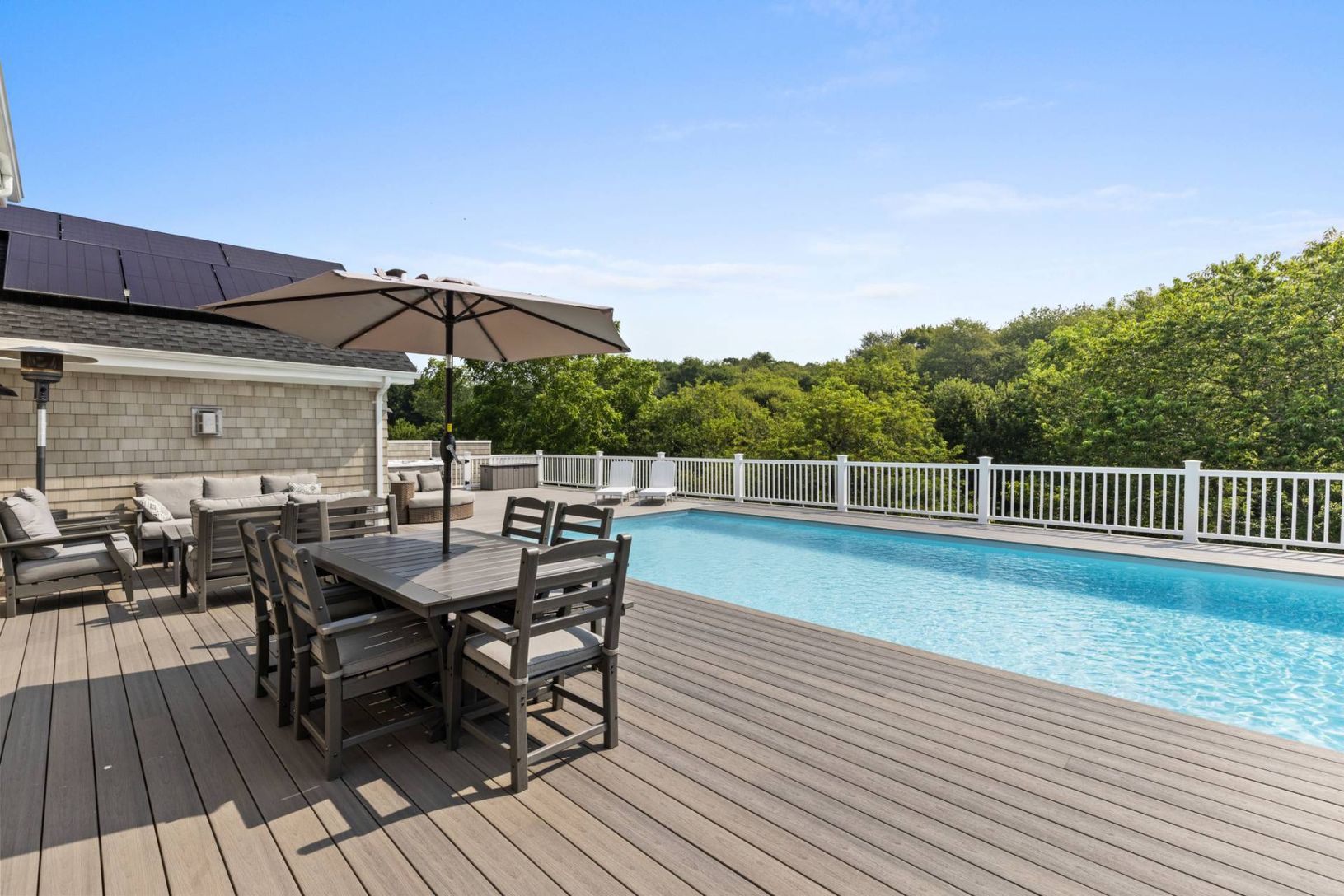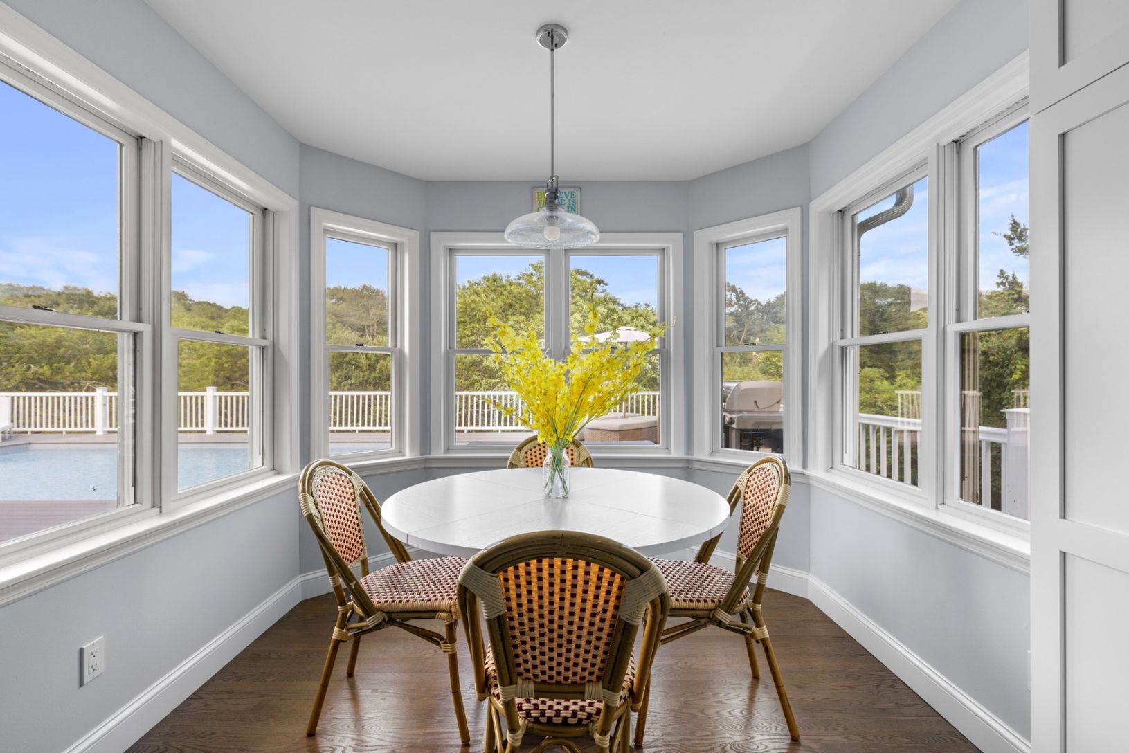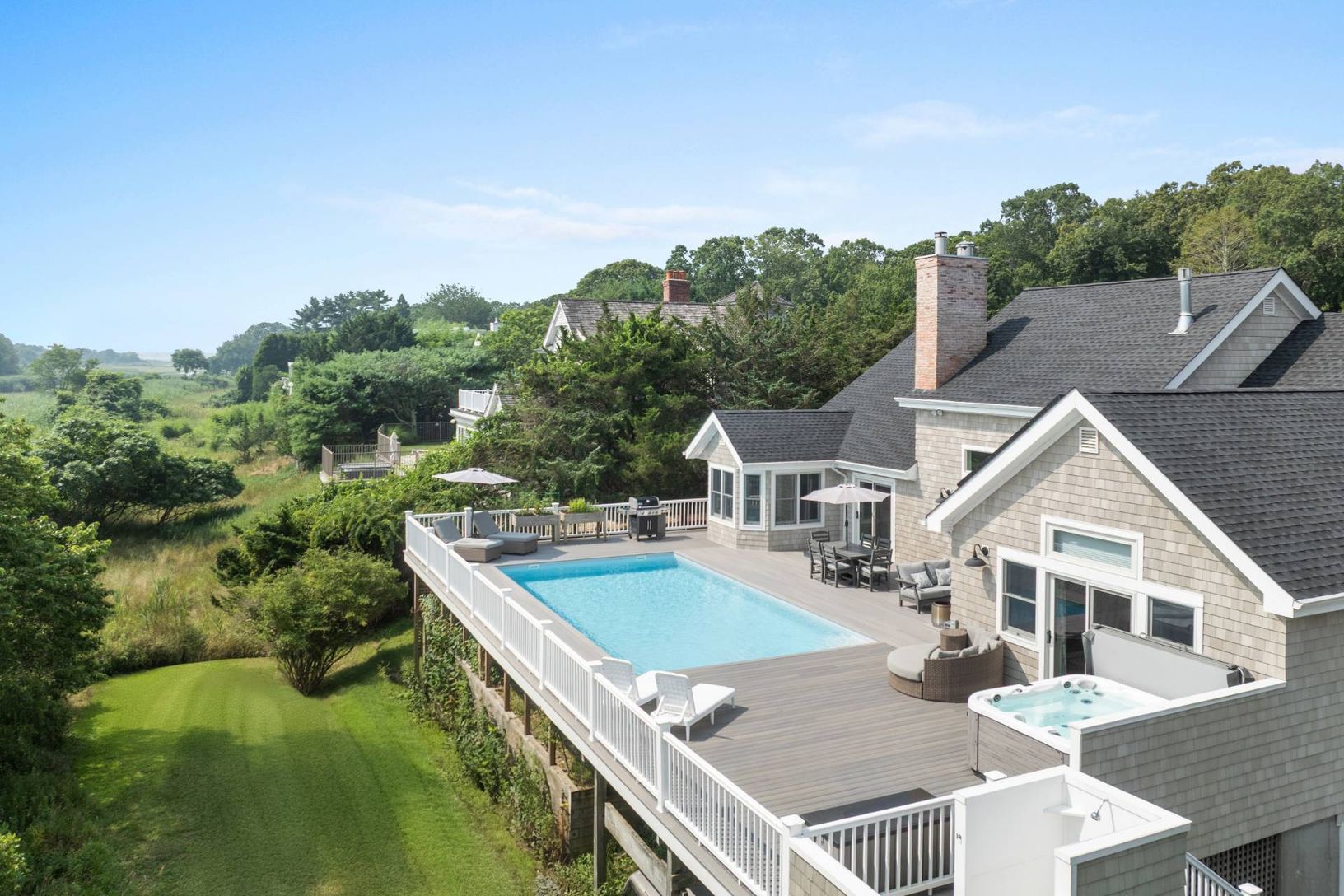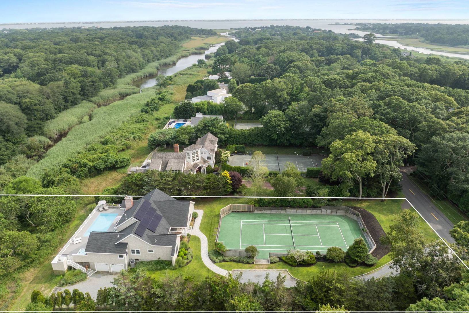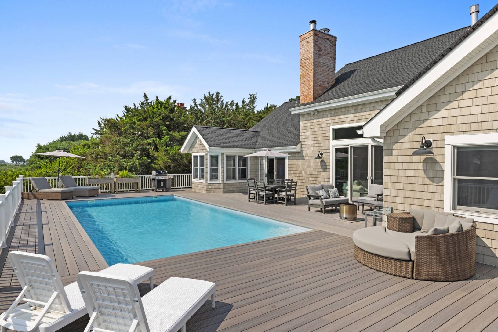 Welcome to your private oasis in the Hamptons-a truly turnkey retreat designed for effortless luxury and year-round enjoyment. Tucked away on an acre and a half down a private drive, this beautifully renovated, single-level residence offers four spacious bedrooms and four full bathrooms, a stunning chef's kitchen, a charming deckside breakfast room, and a den/office tucked behind French doors-ideal for working from home or quiet retreat. Fully