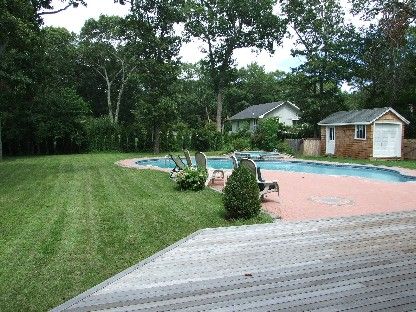 Situated just a few minutes from East Hampton village, this beautiful traditional boasts custom hand crafted finishes. 4 bedrooms, 4 baths, large eat-in kitchen, formal dining room, two living rooms, and grand entry foyer and a convenient laundry room just off the kitchen make for a spacious home. The grounds are lushly landscaped with a large pool and Jacuzzi. Close to the bay and ocean beaches.