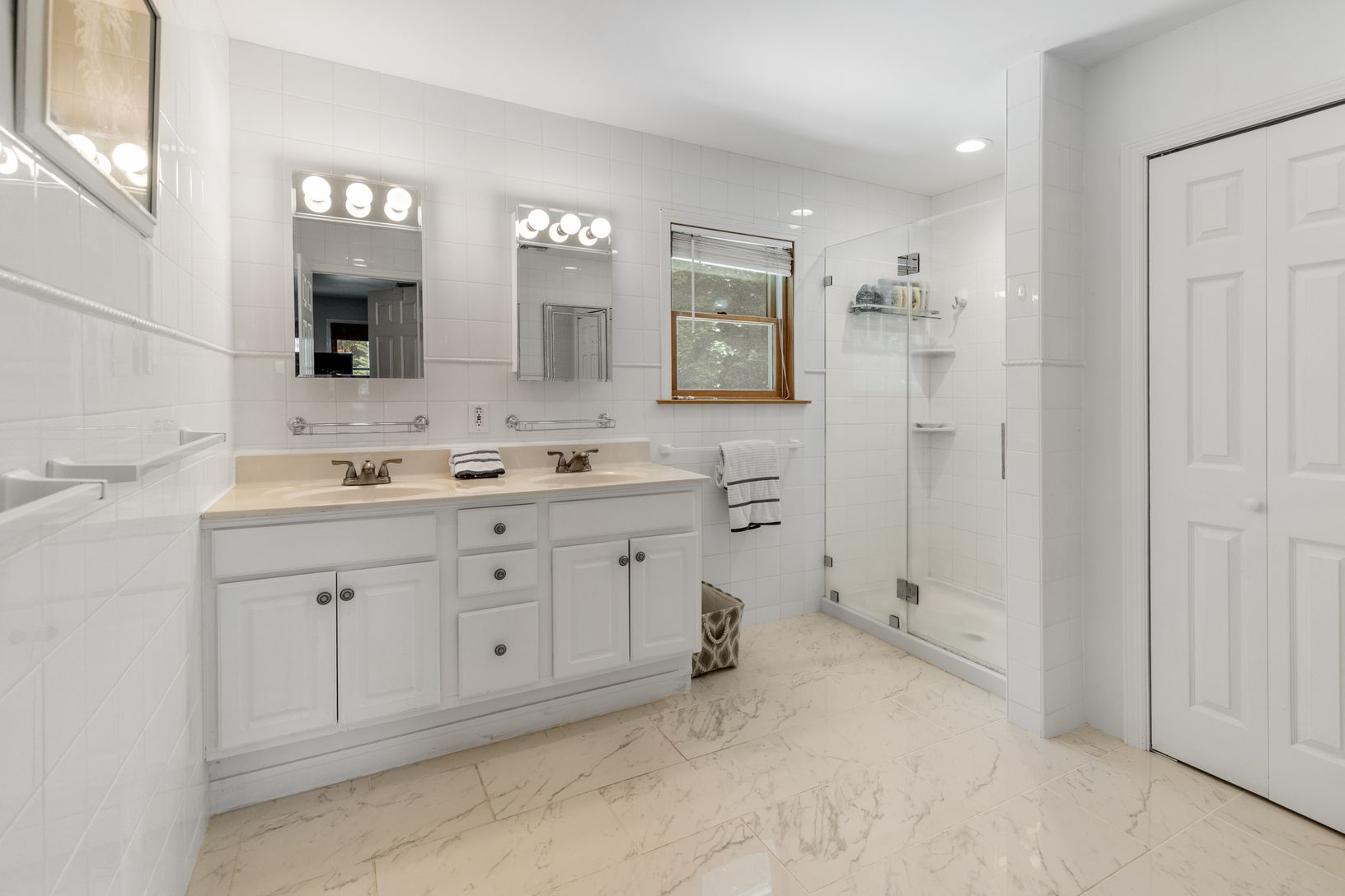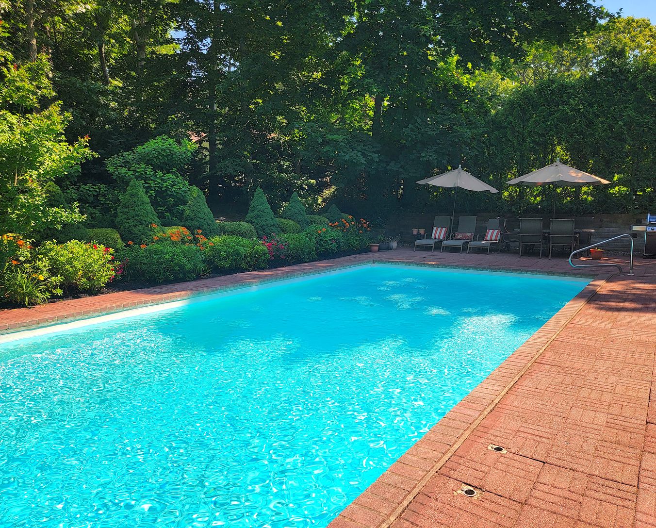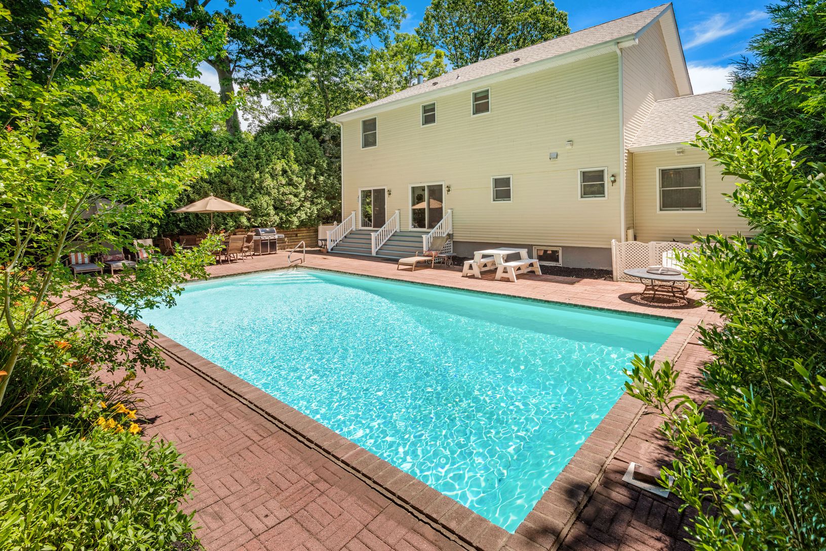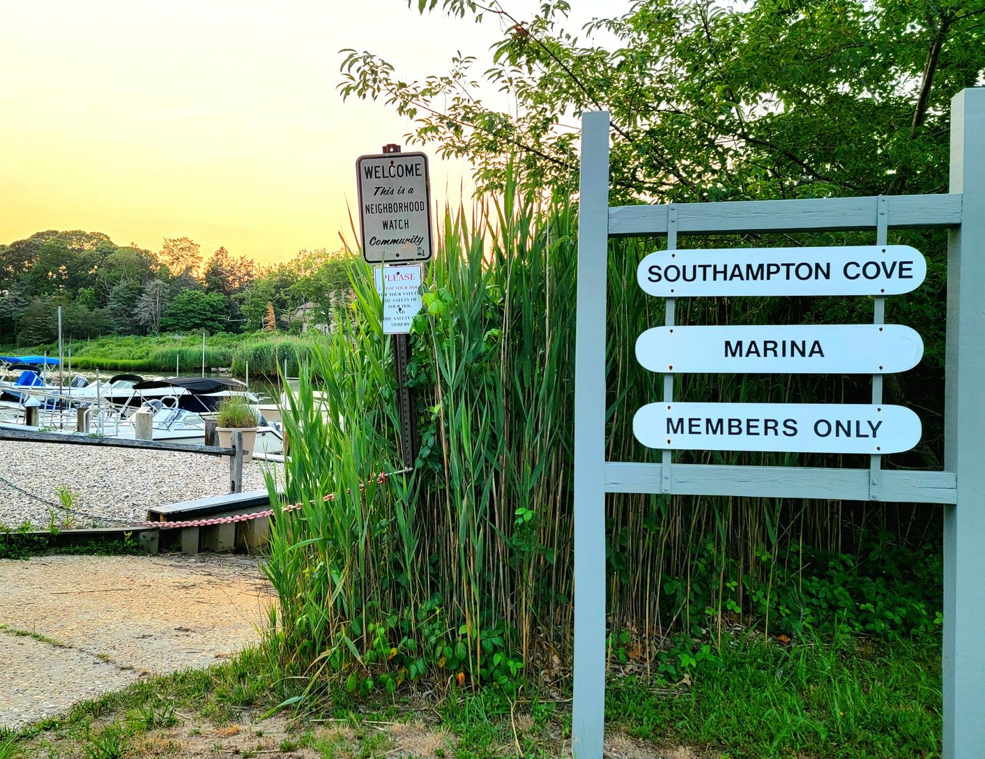 Spacious, light-filled four bedroom, four full bath residence on .40 acre of private, lush gardens located in the highly desirable waterfront community Southampton Cove. Abundance of space, hardwood floors, living room with wood-burning fireplace, large dining room with views of pool and sun-soaked patio, surrounded by beautiful landscaped backyard. Bright, open white kitchen, ample cabinet storage, marble countertops with breakfast bar and st