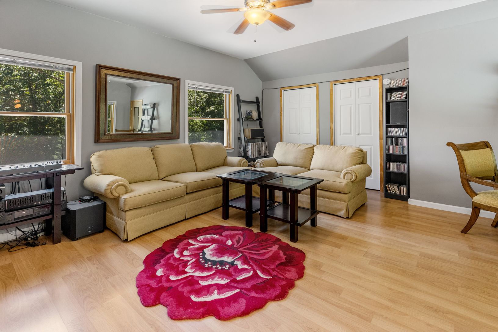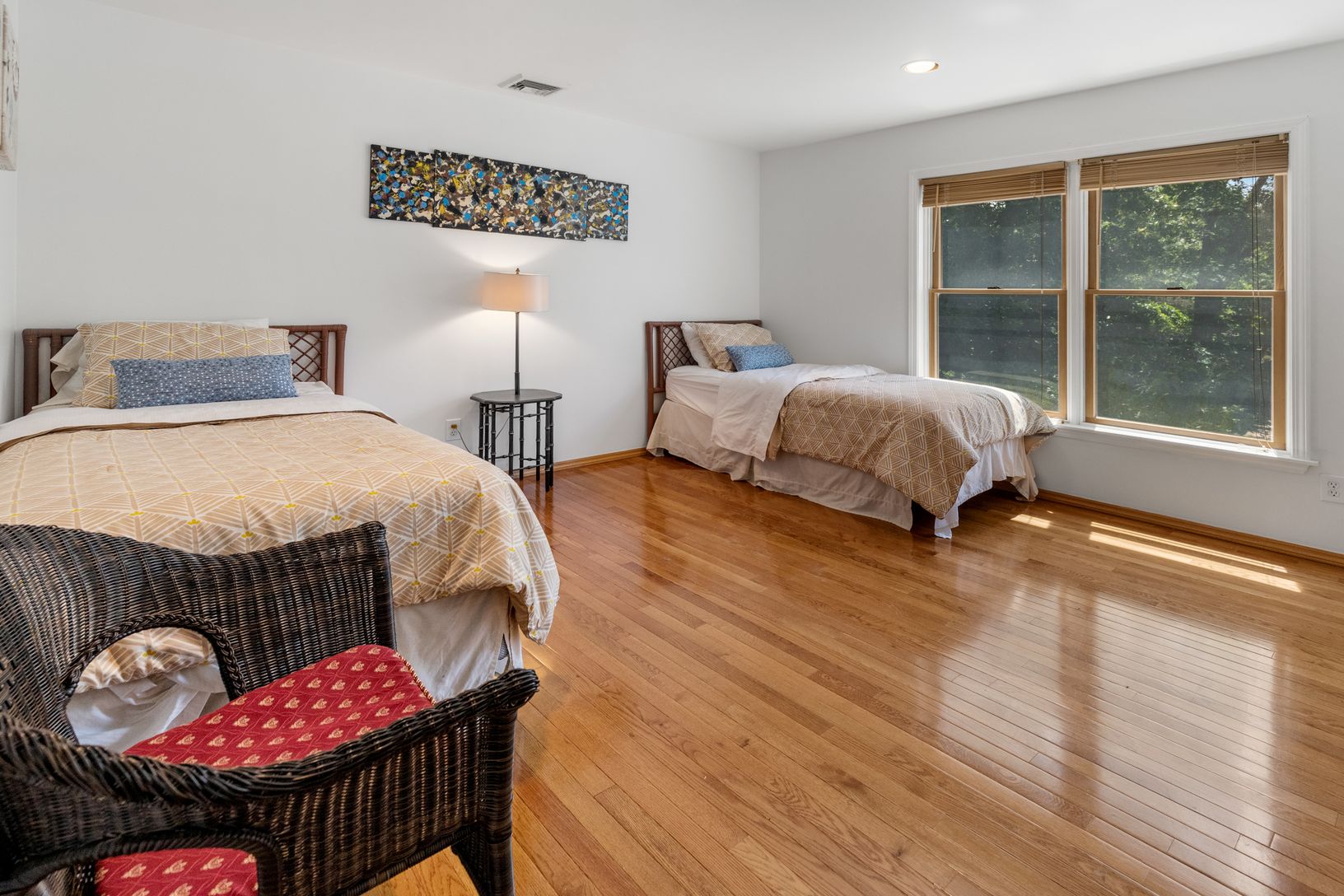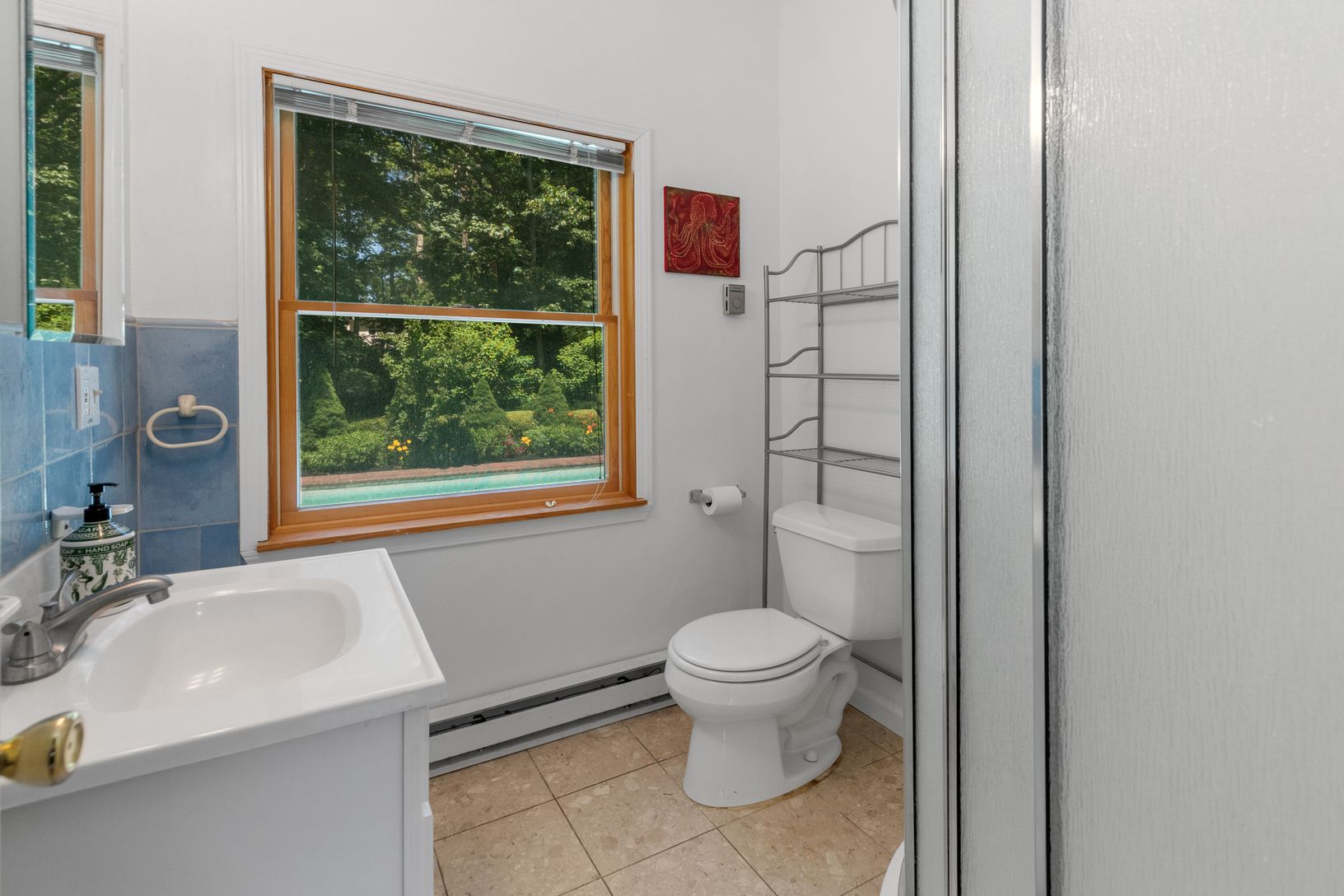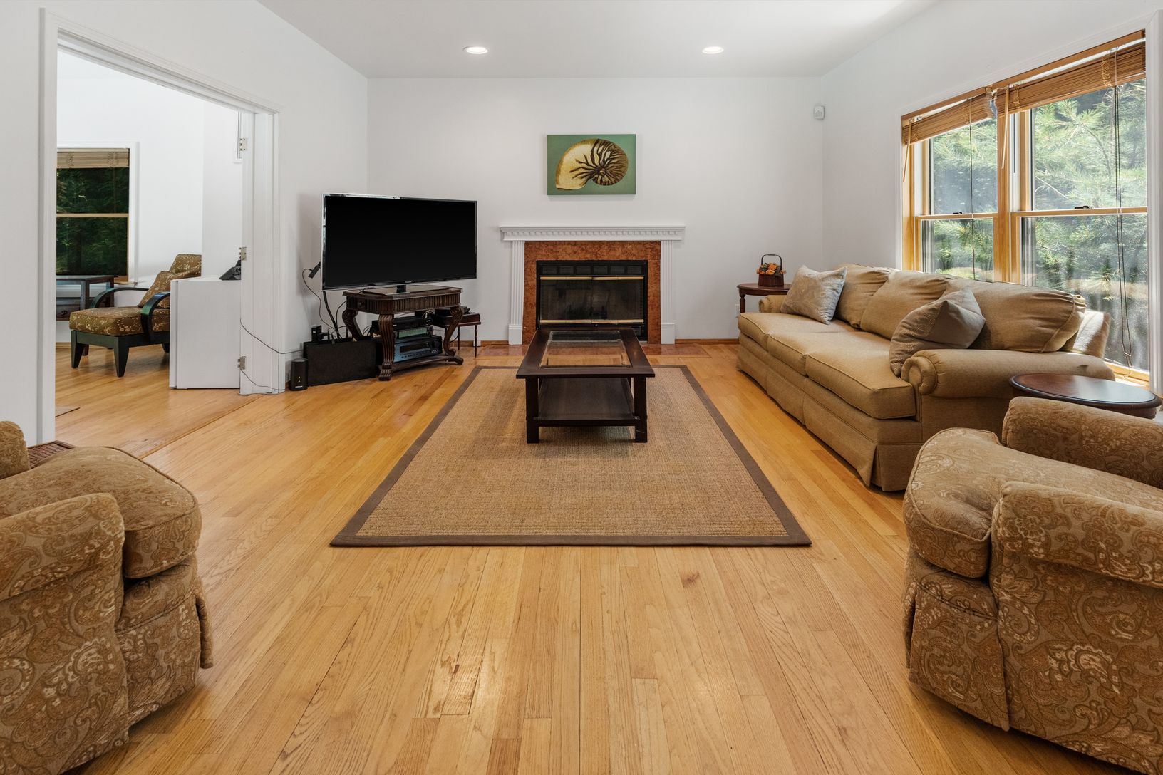 Spacious, light-filled four bedroom, four full bath residence on .40 acre of private, lush gardens located in the highly desirable waterfront community Southampton Cove. Abundance of space, hardwood floors, living room with wood-burning fireplace, large dining room with views of pool and sun-soaked patio, surrounded by beautiful landscaped backyard. Bright, open white kitchen, ample cabinet storage, marble countertops with breakfast bar and st