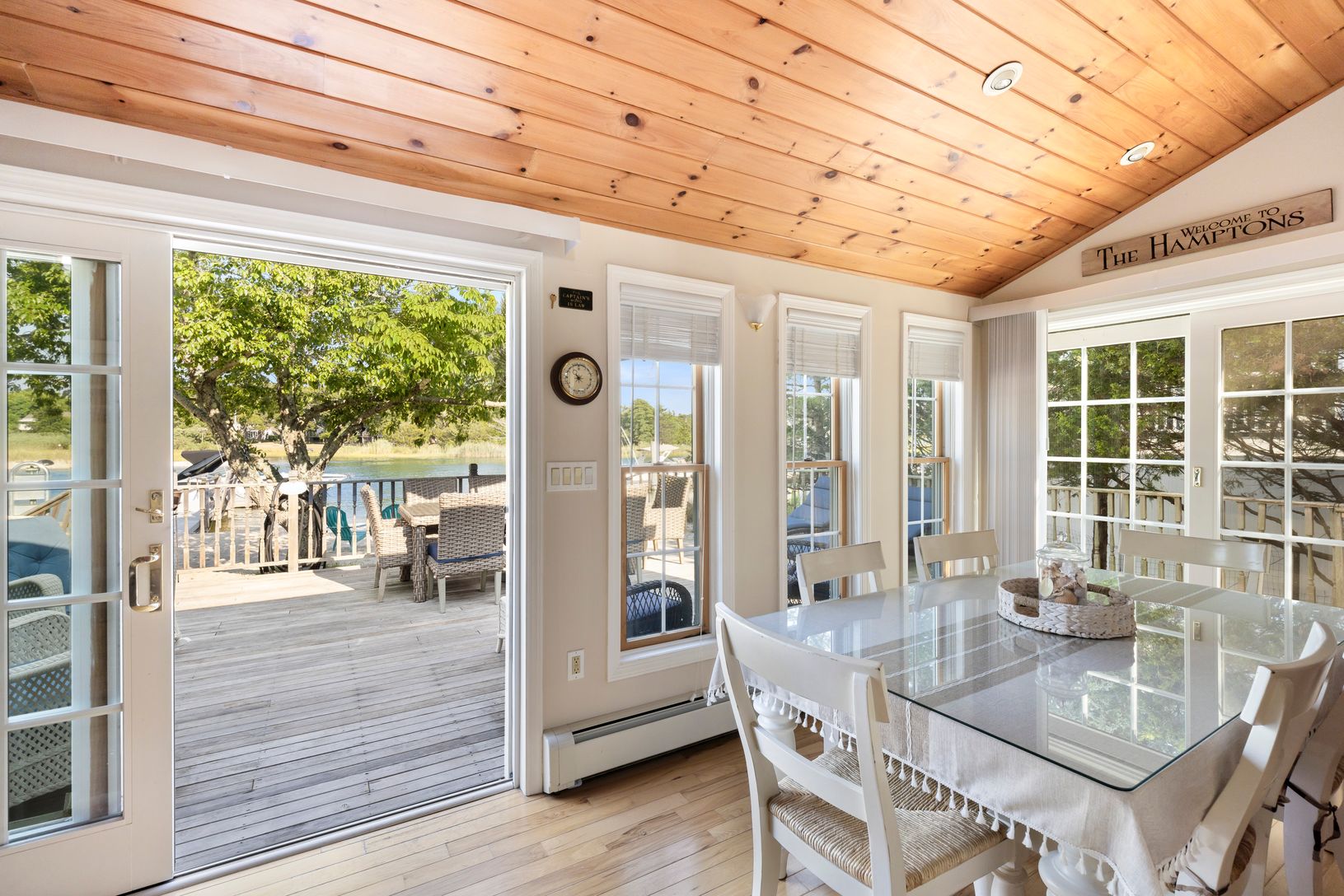 A rare offering in the coveted Southampton Shores community, this waterfront retreat blends relaxed coastal living with Hamptons luxury. Set directly on Wooley Pond with your own private dock, this 4 bedroom and 2 bath home invites effortless days spent boating, kayaking, or paddle boarding straight from your backyard. Framed by lush privacy hedges on two sides and wide-open water views on the other, the property offers both seclusion and a de