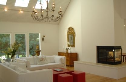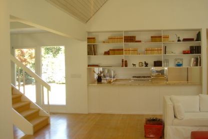 Gorgeous already completed light, bright, open, crisp and clean Swedish contemporary beach house. Three ensuite bedrooms, one additional guest bedroom with bath. Library or media room easy to convert to a fifth bedroom. Newly renovated kitchen with stone counters. Open living/dining with a dual fireplace. Finished basement. Rare private 1.02 acre with gorgeous, lush, mature landscaping with specimen tree plantings. Private heated pool and dec