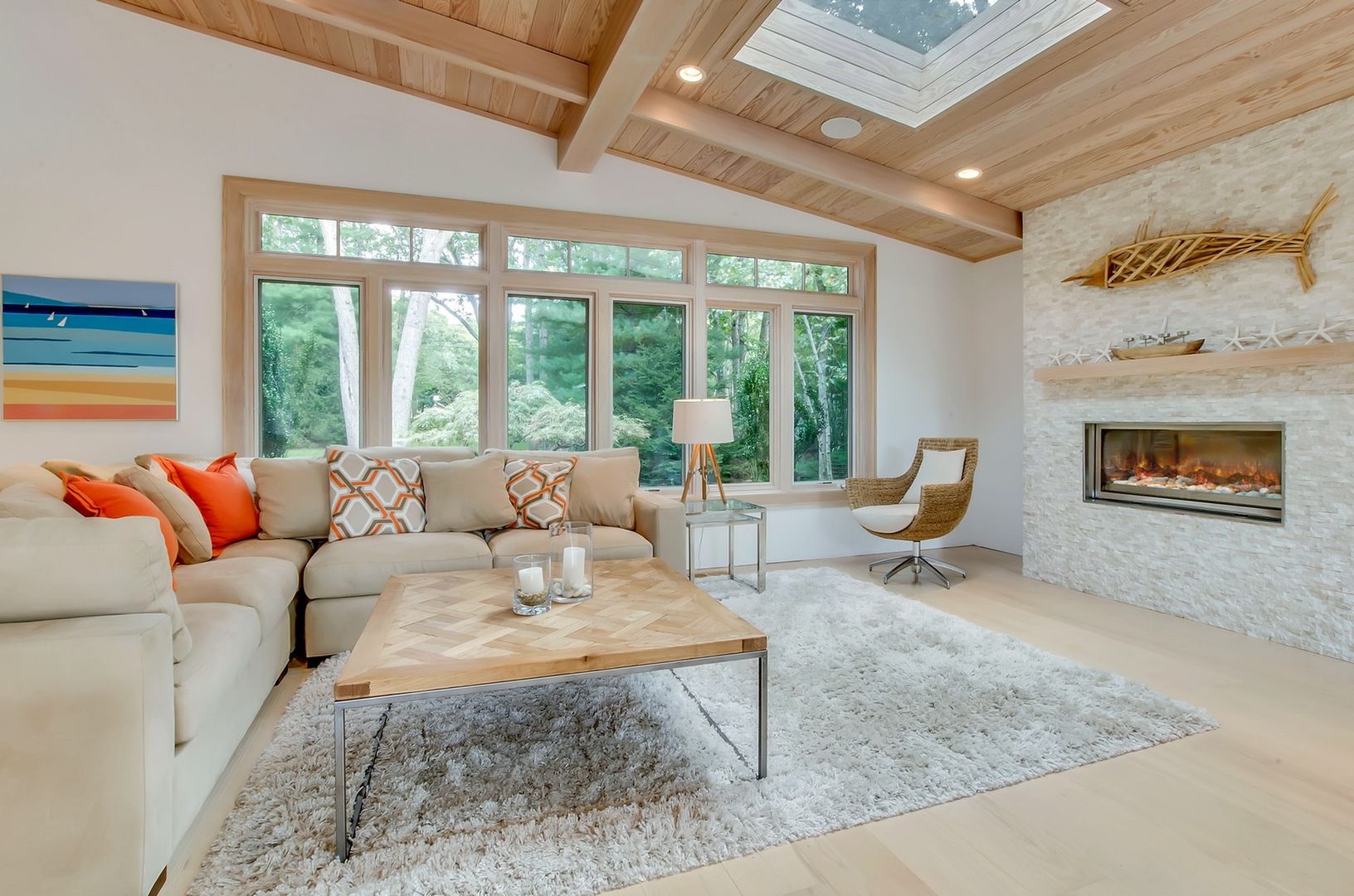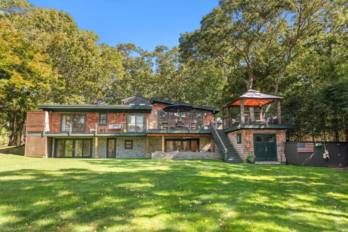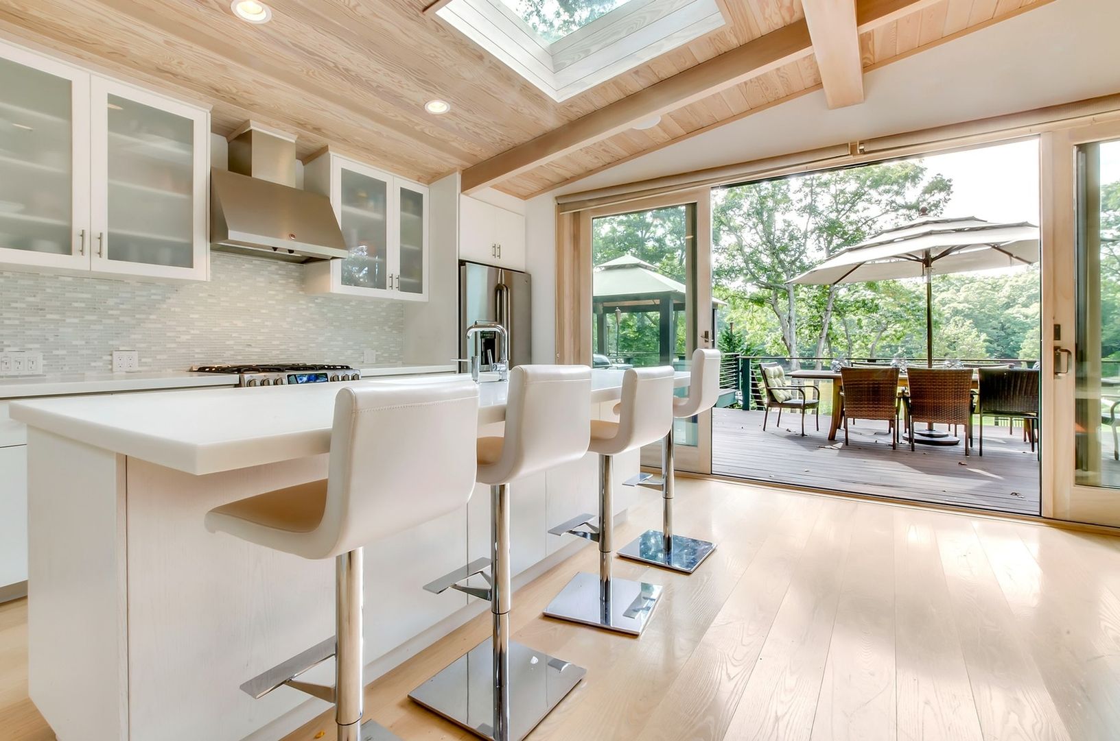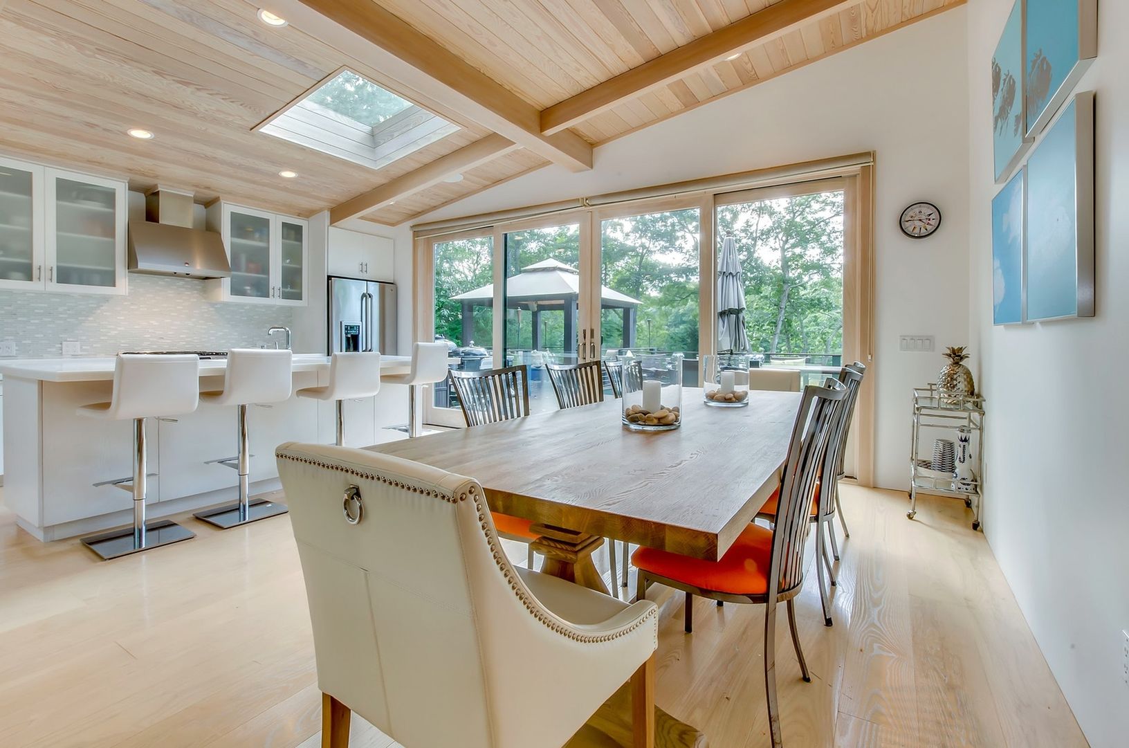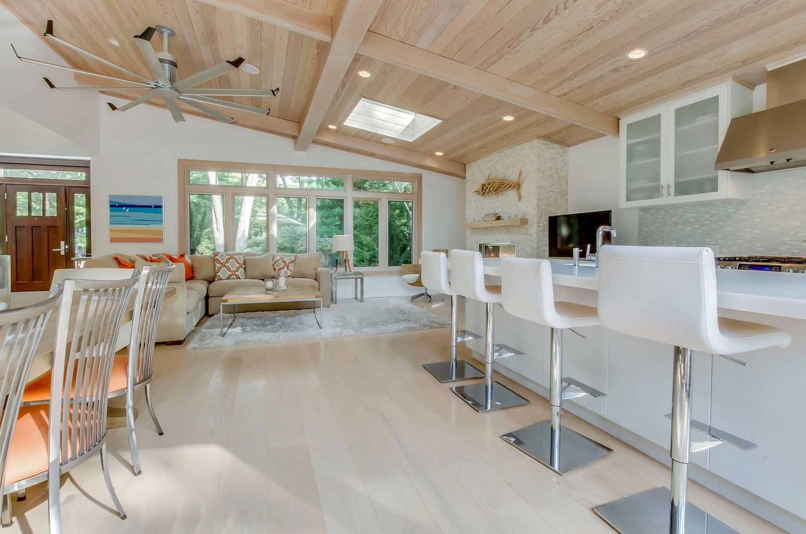 This idyllic waterfront home located in Clearwater Beach, a private community in East Hampton, was completely redesigned and renovated in 2014. This one-of-a-kind home features high-end renovations and a distinctly modern ambiance across two expansive floors. Sleek, modern lines blend effortlessly with a beach-chic vibe. There are many custom features in this four-bedroom, three bath home with den/office, gorgeous kitchen with high-end stainle