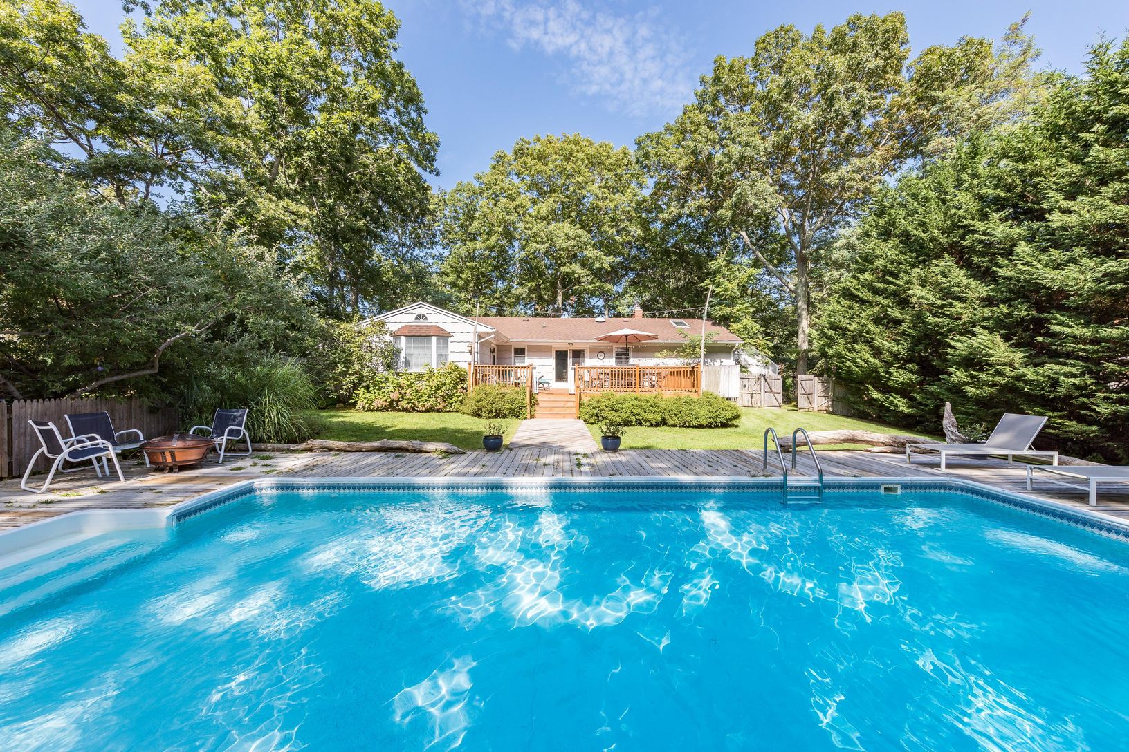 Charming 3-Bedroom, 2-Bath Home Near Bay Beaches. Step into coastal comfort with this beautifully updated home just minutes from Three Mile Harbor. Featuring two spacious living rooms and a bright, open-concept kitchen and dining area-perfect for entertaining. A sliding glass door opens to a large back deck that overlooks a sprawling yard and inviting pool-ideal for summer gatherings and outdoor relaxation. A propane grill and bikes are also i
